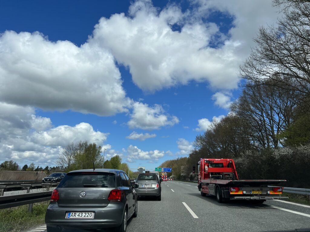 Rednings- og oprydningsarbejdet forventes tidligst afsluttet kl. 12:50, skriver Vejdirektoratet.