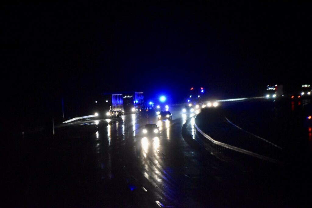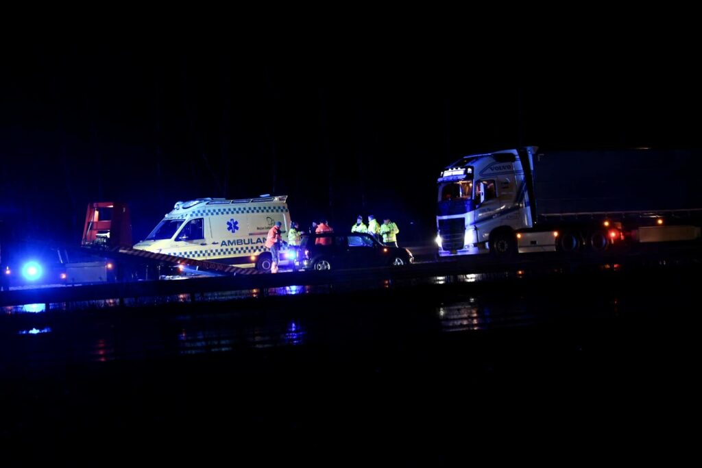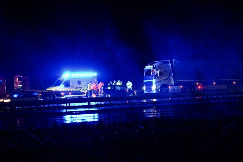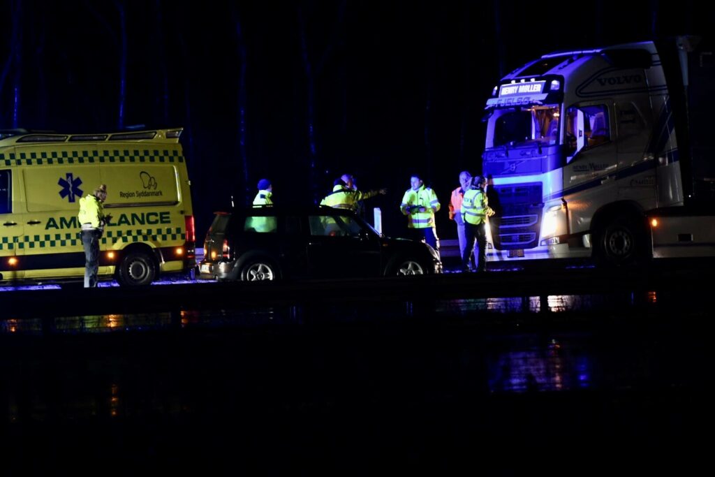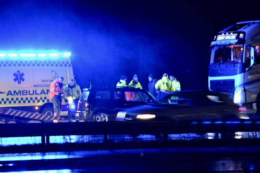 Uheldet er sket i højre side af motorvejen, hvorfor der lige nu kun er ét spor farbart.