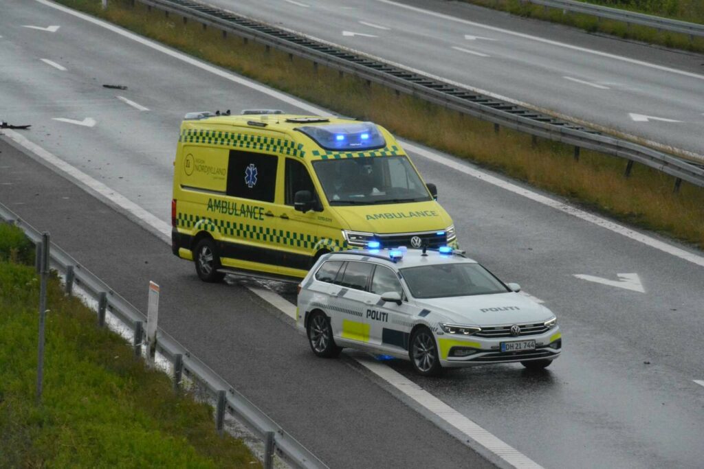 Der er tirsdag morgen sket et færdselsuheld på Nordjyske Motorvej nær Hjørring, hvor en personbil og en lastbil er kørt sammen.