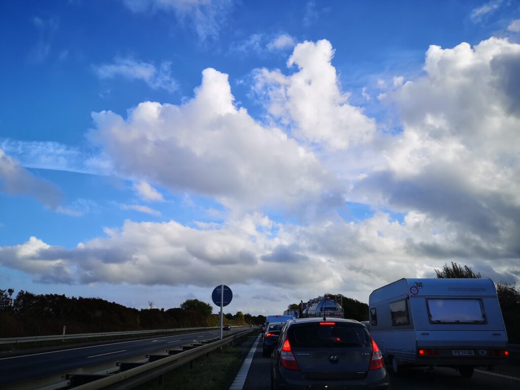 “E45 mod Randers mellem motorvejskryds Aarhus Vest og motorvejskryds Aarhus Nord. Kødannelse, forlænget rejsetid på op til 20 minutter. På grund af et tidligere uheld. Normal trafik forventes sidst på eftermiddagen.”