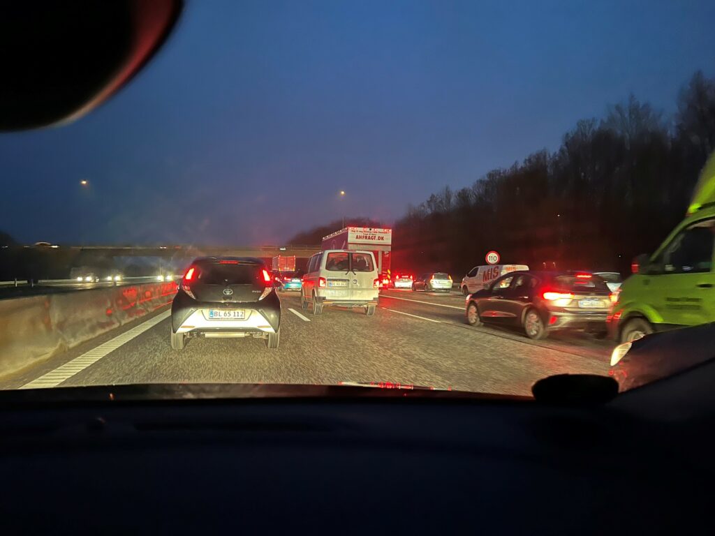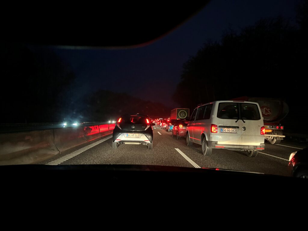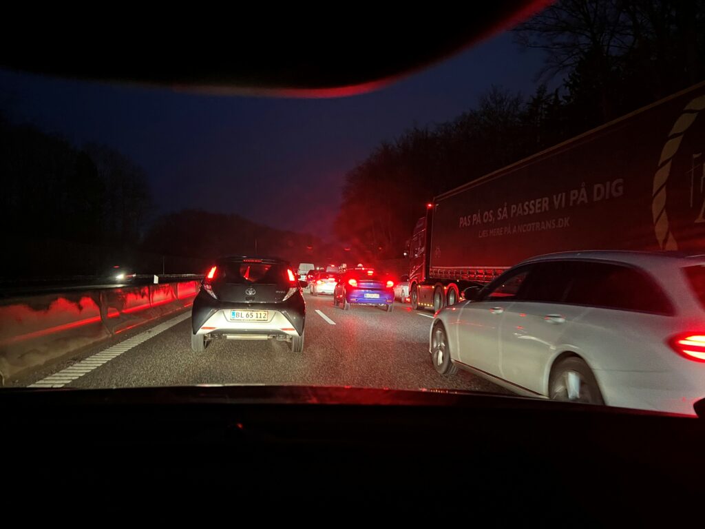 Et uheld på Holbækmotorvejen tæt ved Roskilde tidligere på eftermiddagen skaber kø mellem Roskilde Ø og Roskilde V.