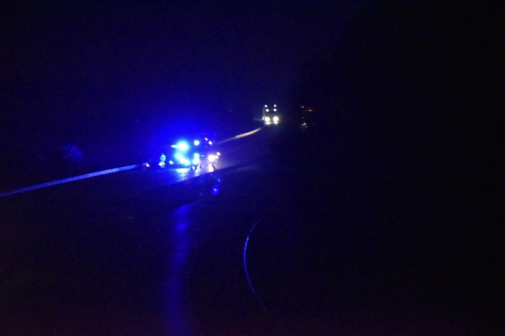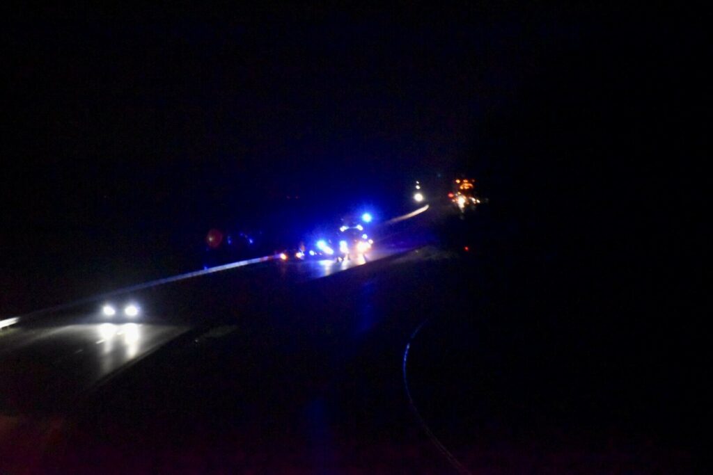 Højre spor er spærret grundet uheldet og politi og redningsmandskab er på stedet.