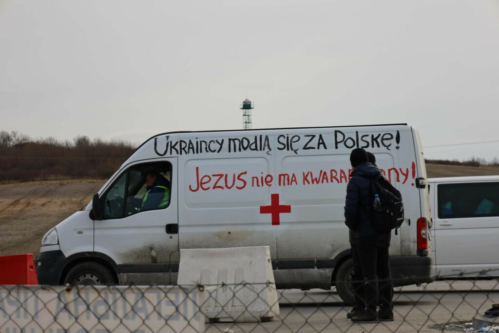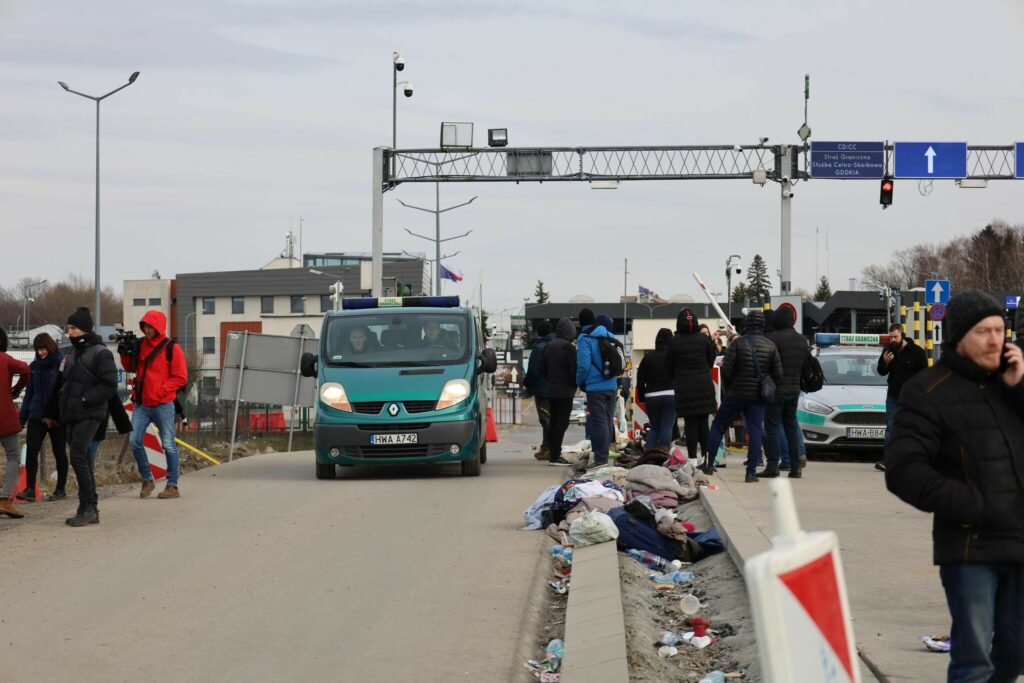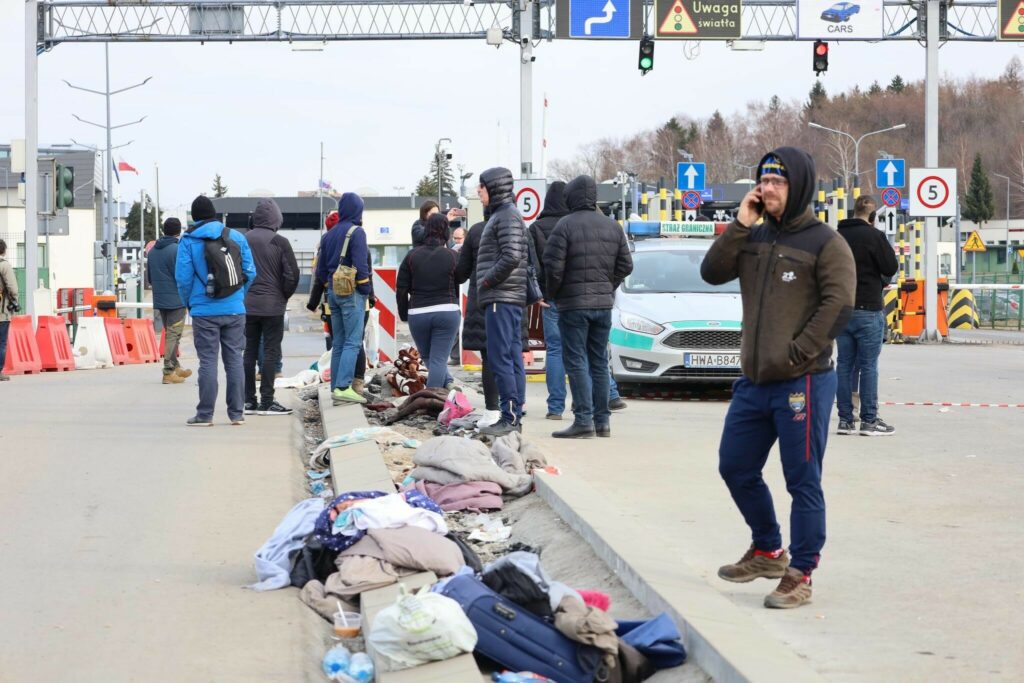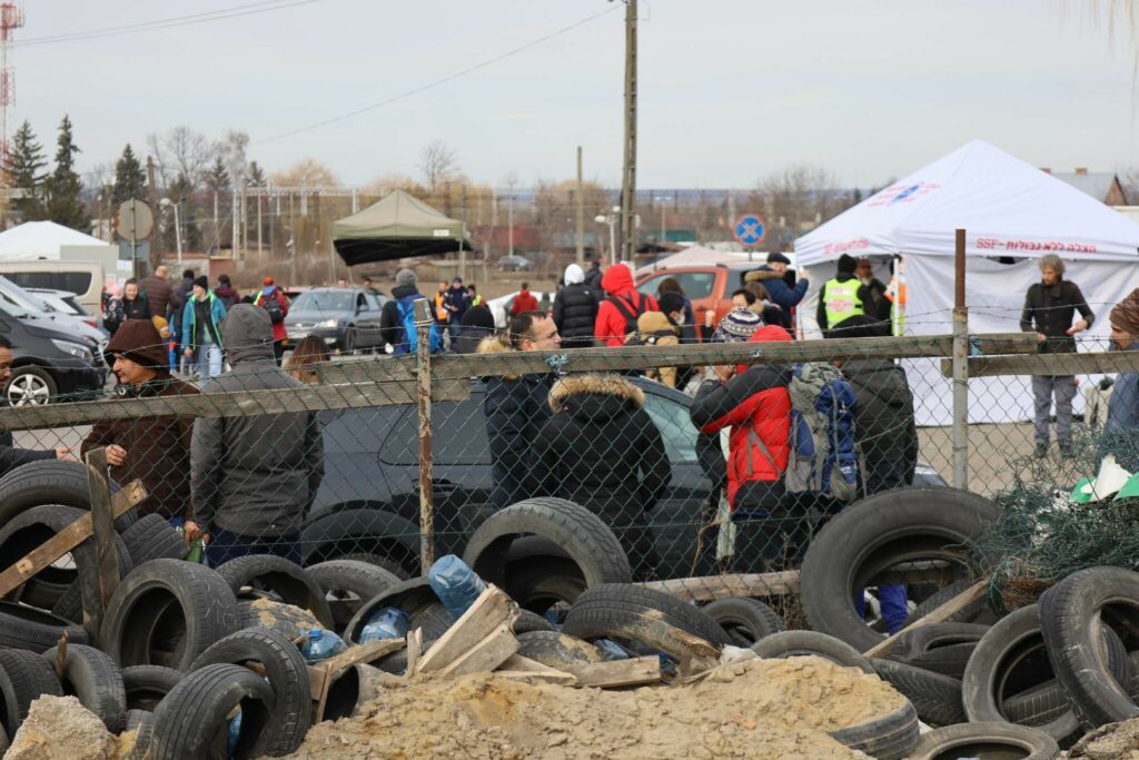 Overraskende nok er der også mange biler med polske nummerplader, som krydser grænsen ind i Ukraine. Det skyldes ifølge Presse-fotos.dk’s mand på stedet, at mange polakker gerne vil hjælpe ukrainerne i Ukraine – det være sig humanitært eller kæmpe side om side med dem og mod russerne.