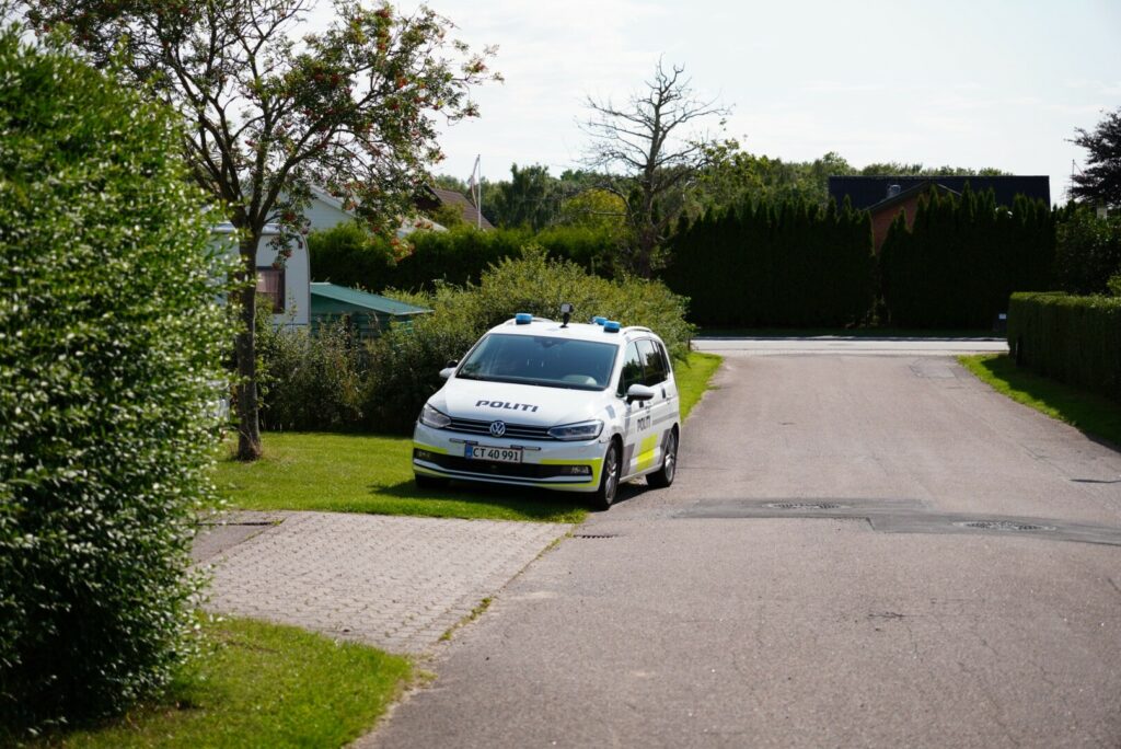 Politiet er også på stedet, hvor der formentlig vil blive uddelt en bøde til personen, der har brugt ukrudtsbrænderen.