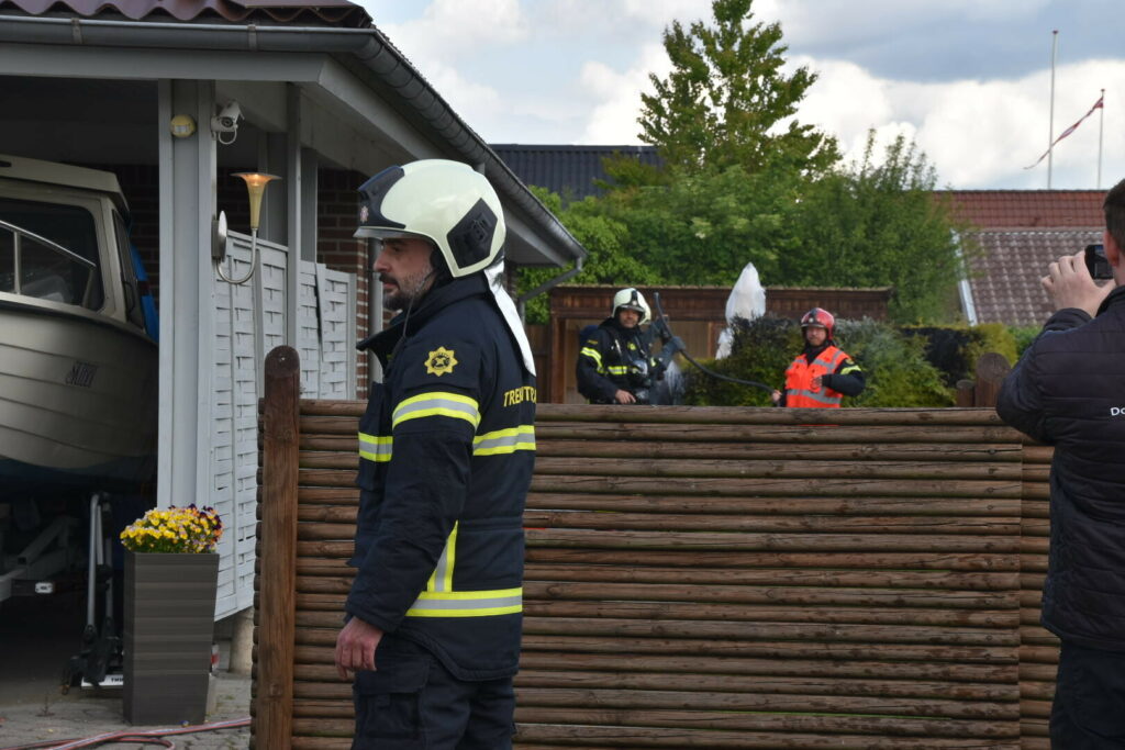 Branden blev slukket af beboerne og nogle naboer, som brugte en vandslange til at få bugt med branden.
