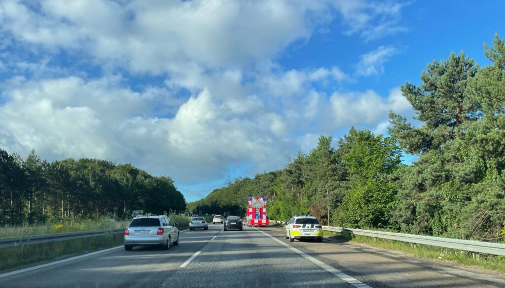 Politi og redning er onsdag morgen til stede på Hillerød motorvejen ved Farum, hvor der på indadgående strækning er sket et færdselsuheld.