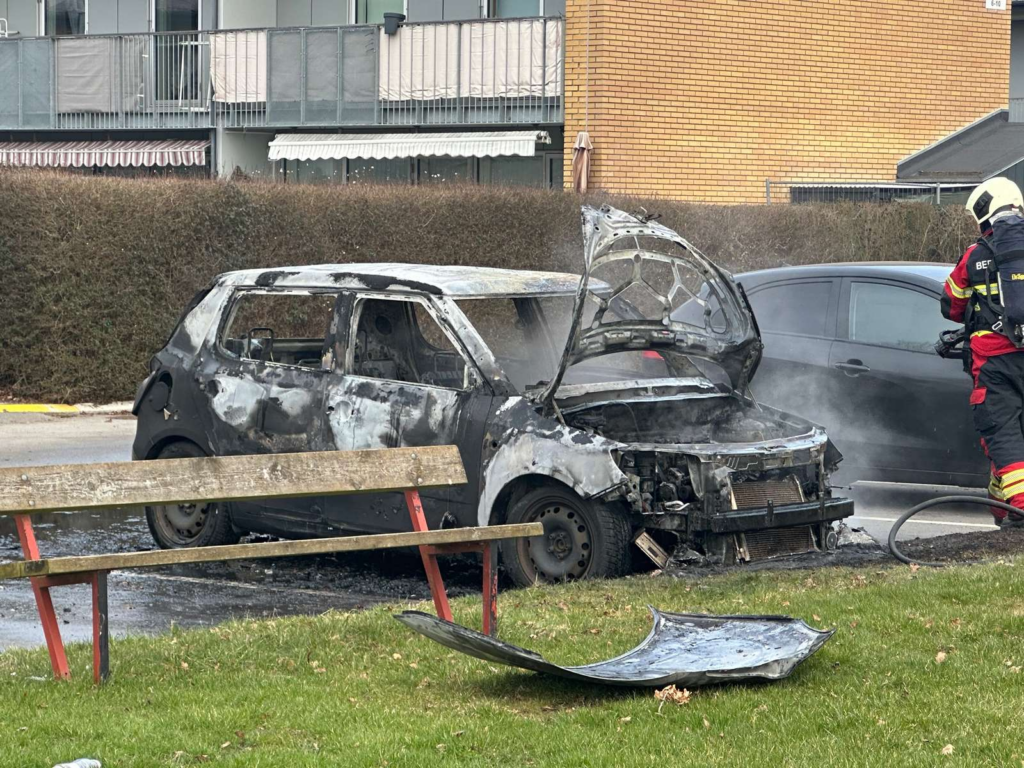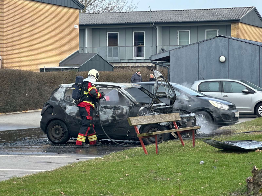 En anden bil i nærheden fik dog mindre brandskader af at stå for tæt, oplyser Presse-fotos.dks udsendte.