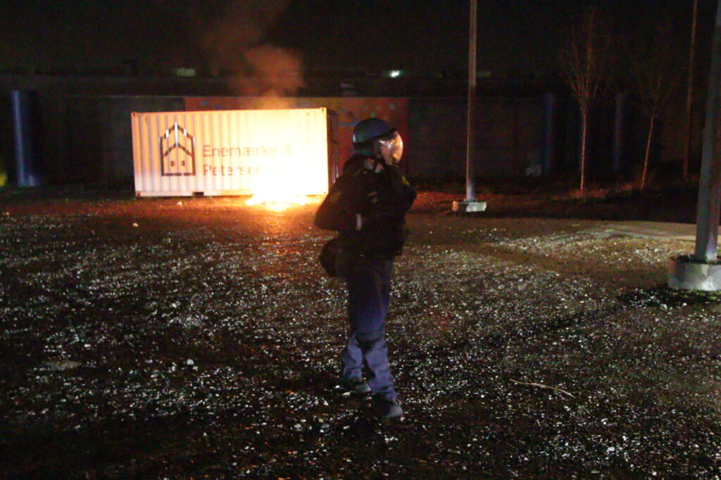 Der kastes med kasteskyts efter politiet og sættes ild til bla containere.