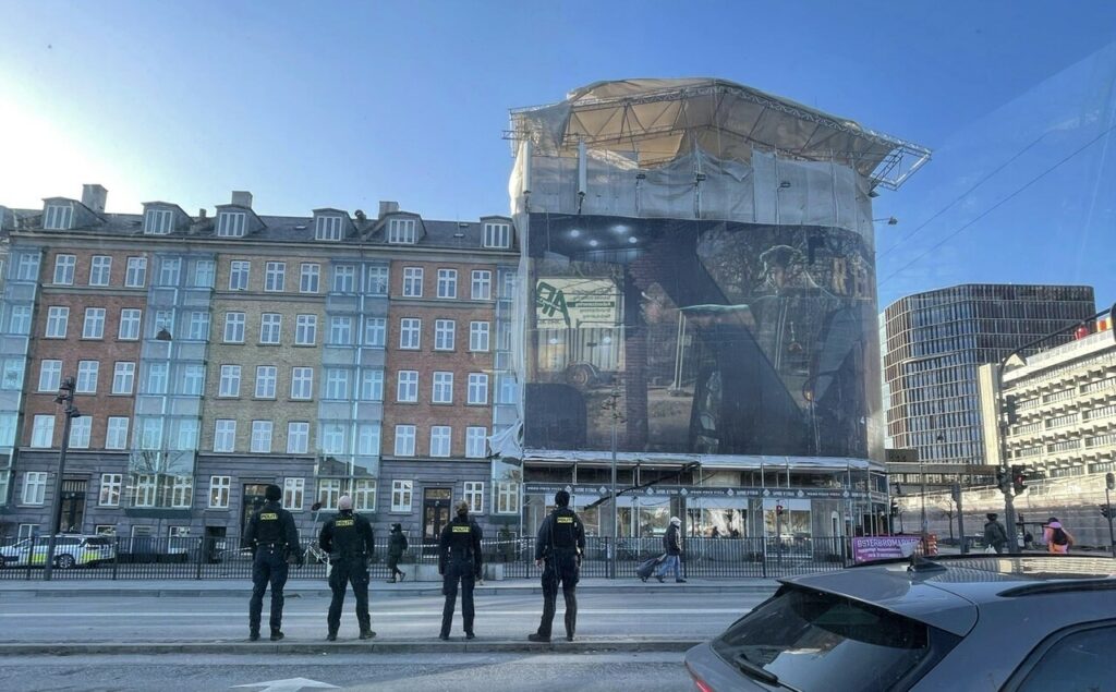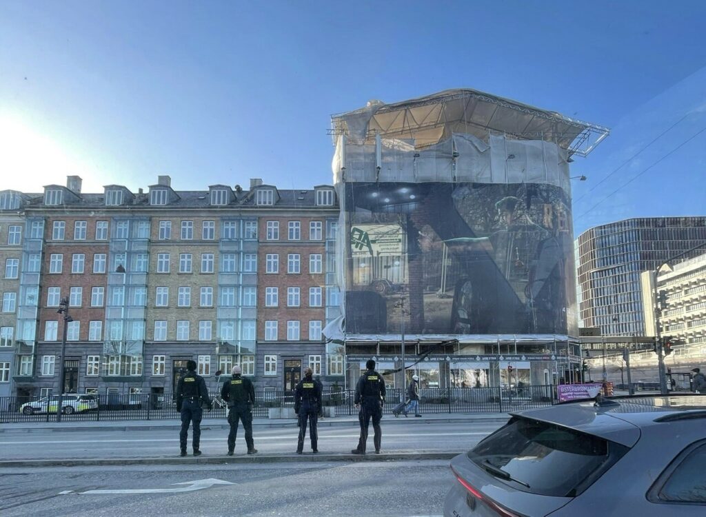 Politiet vurderer søndag sikkerheden på et stillads i Fredensgade ved krydset Blegdamsvej. Fortorv, cykelsti og første kørebane er afspærret.
