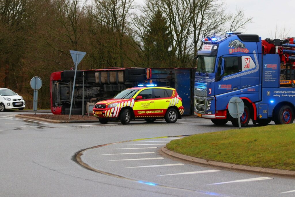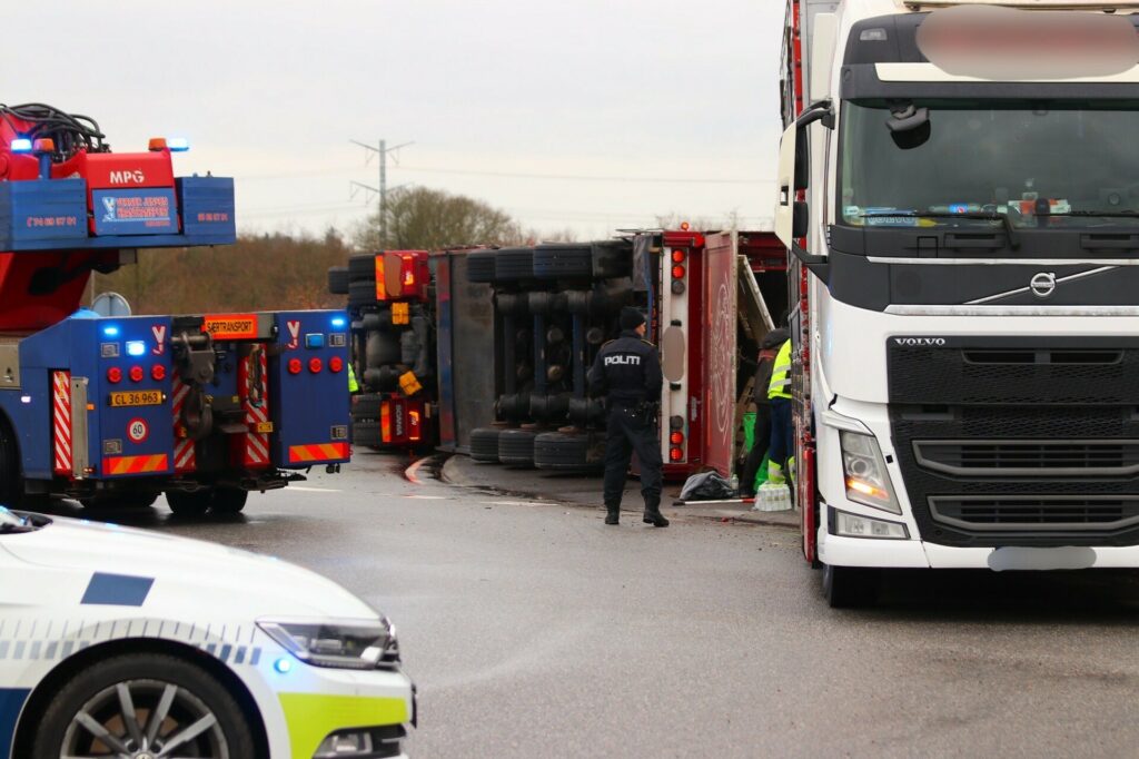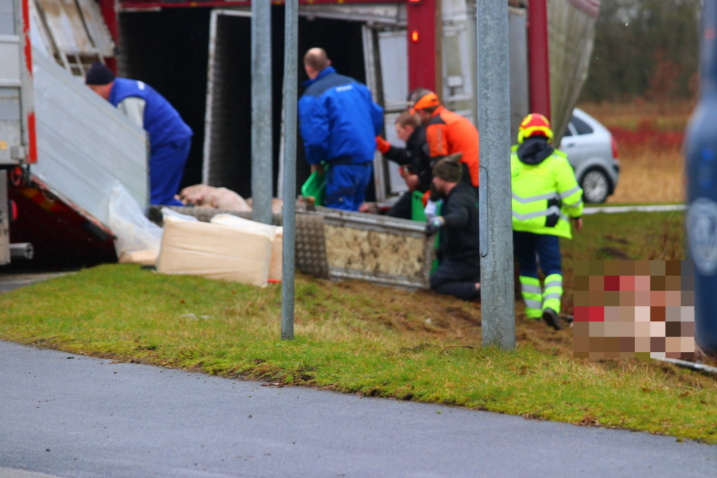 En grisetransport er torsdag eftermiddag væltet på Tøndervej i Padborg.