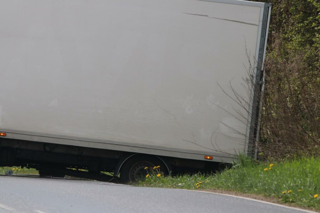 Varebilen er kørt fast i rabatten, og afventer hjælp.