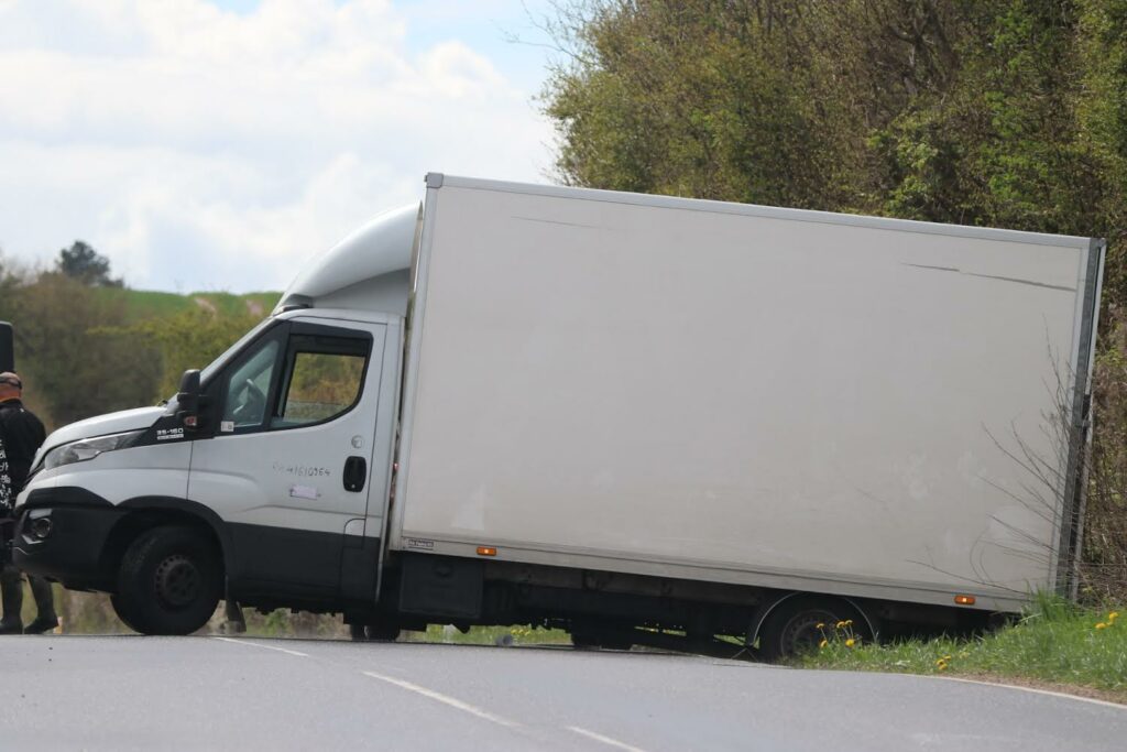 På Turupvej ved Assens, spærre en varebil trafikken.