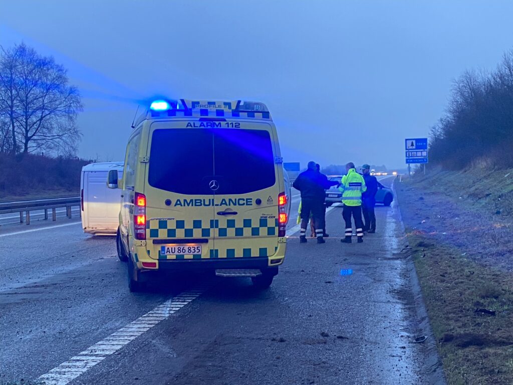 Ulykken er sket på Rute 18 mellem Give og Tørring og motorvejen er i øjeblikket spærret på strækningen.