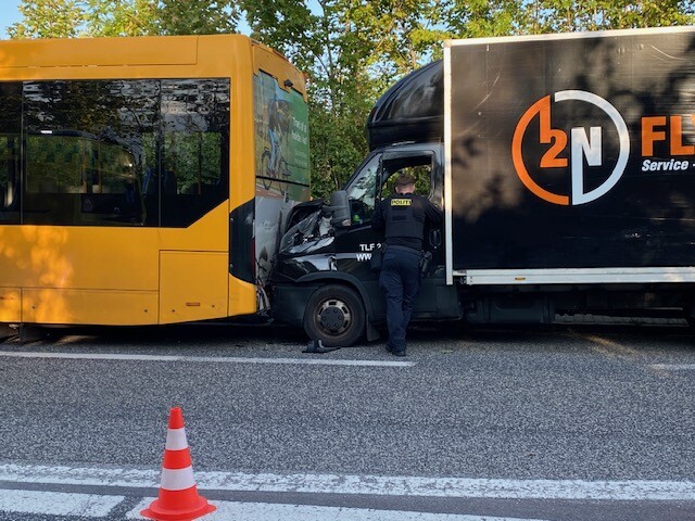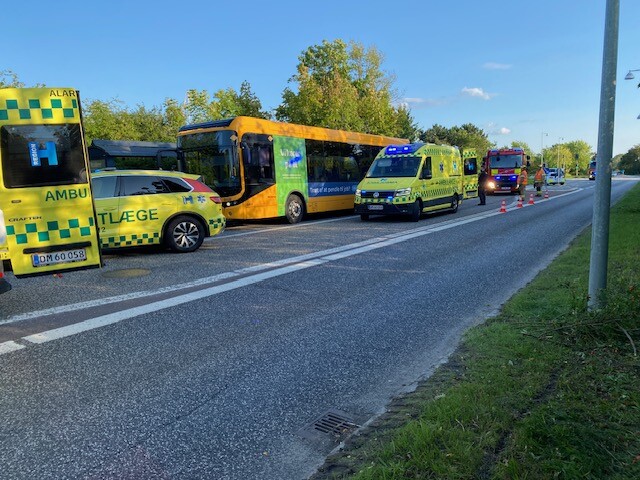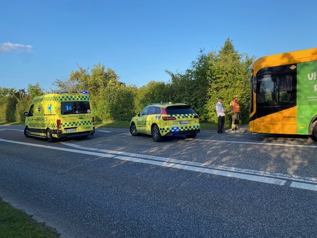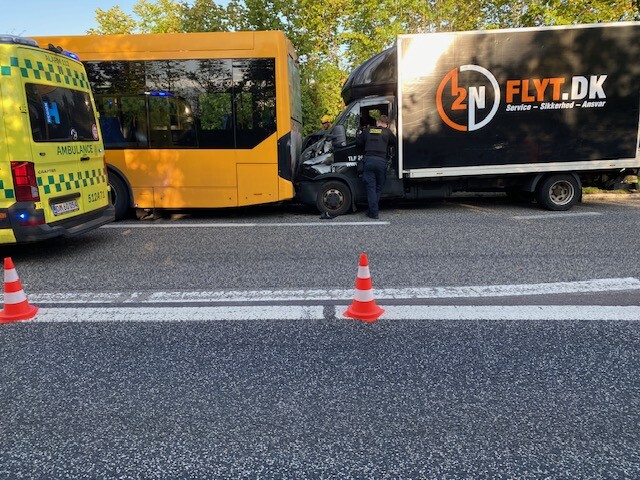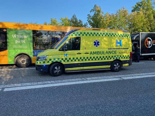 Politi og redning er fredag aften til stede på Herstedøstervej/Trippendalsvej i Albertslund, hvor en varebil er kørt op bag i en bus.