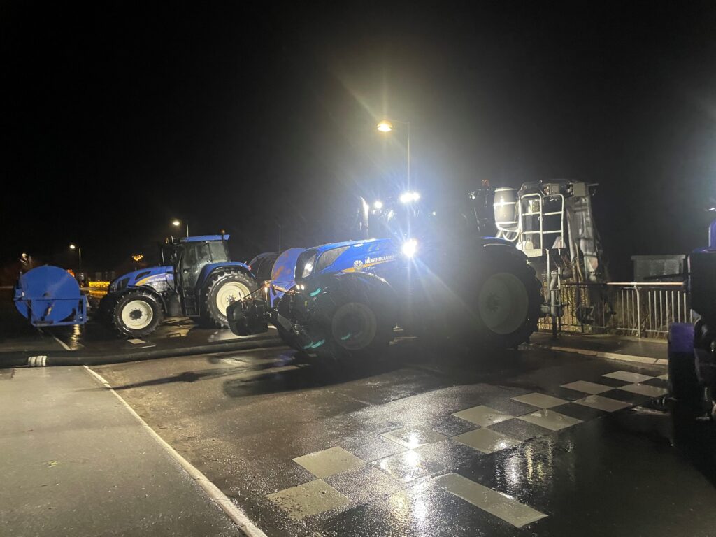 Det er traktorer, der tirsdag aften har formet afspærringer på vejen.