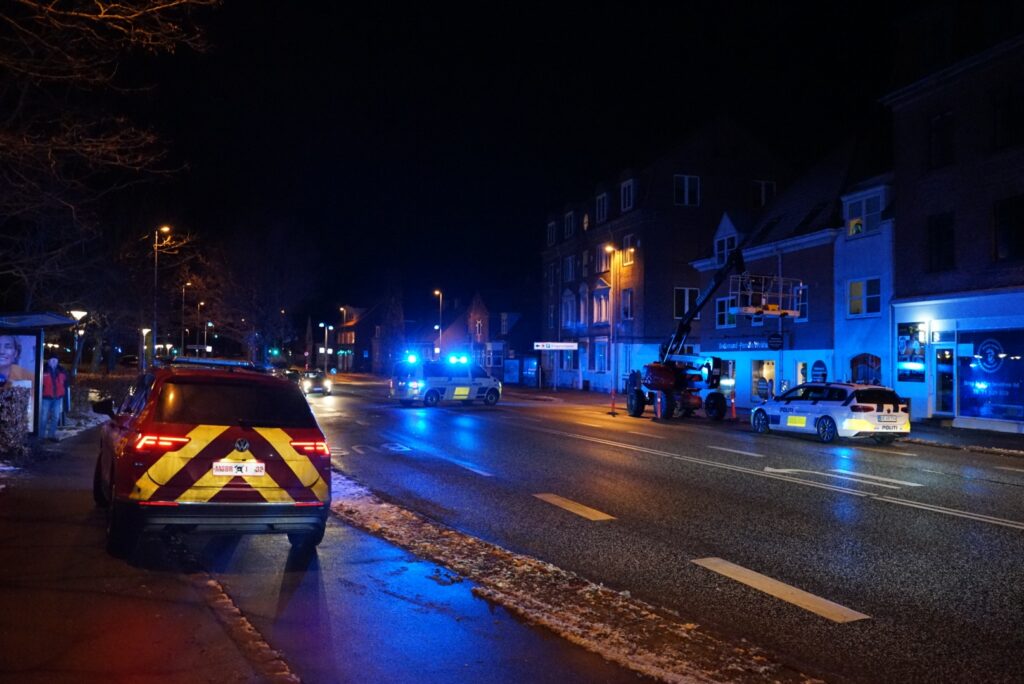 Ringstedgade i Næstved er blevet spærret af de mange udrykningskøretøjer, da brandvæsnet fortsat er i gang med at arbejde på stedet.