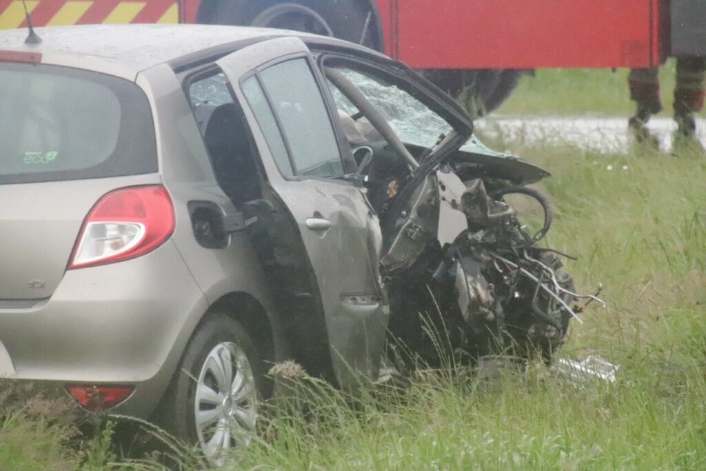 Brandvæsenet var hurtige fremme på stedet, hvor vejen under rednings og oprydningsarbejdet var spærret i begge retninger.