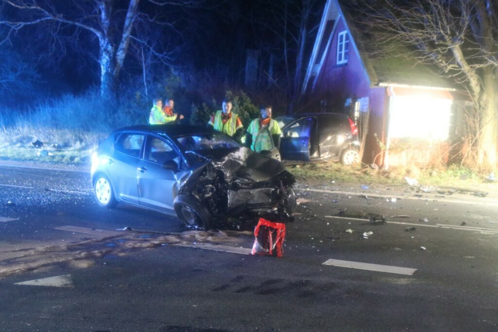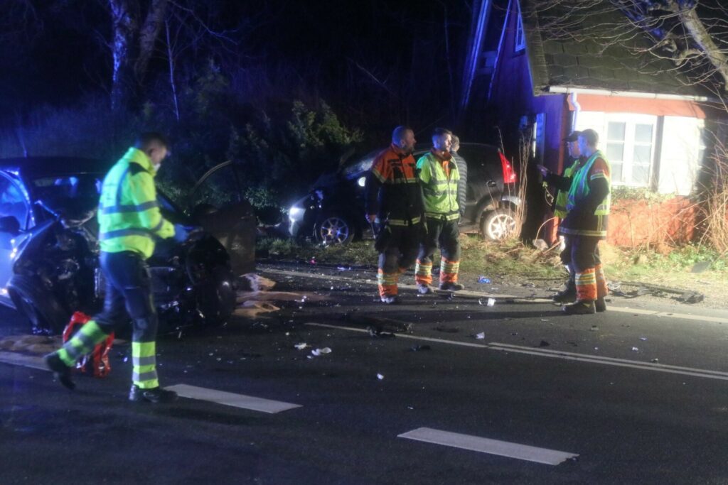 Vej spærret: To biler i voldsomt frontalsammenstød