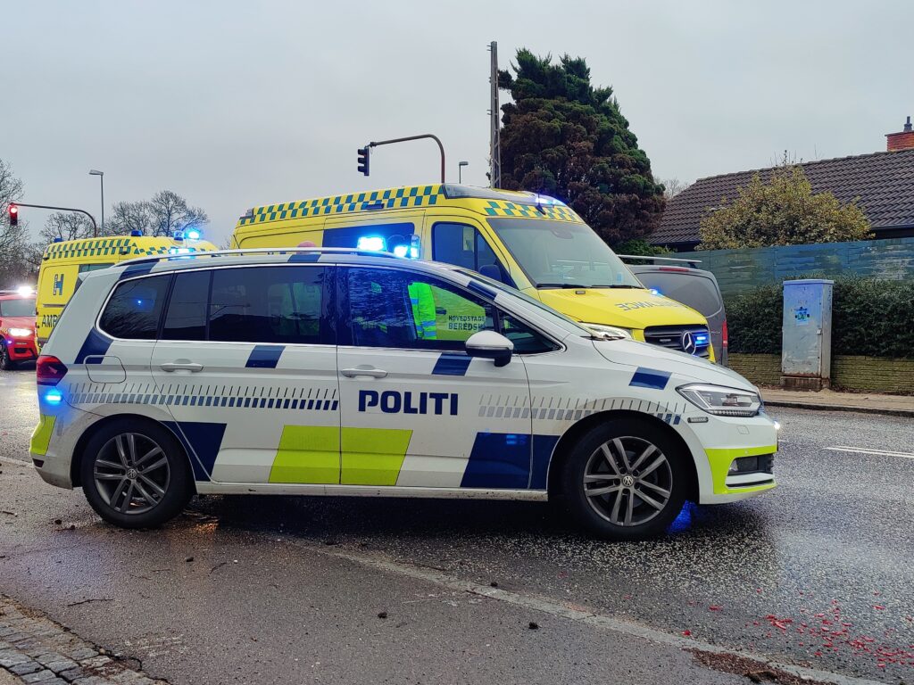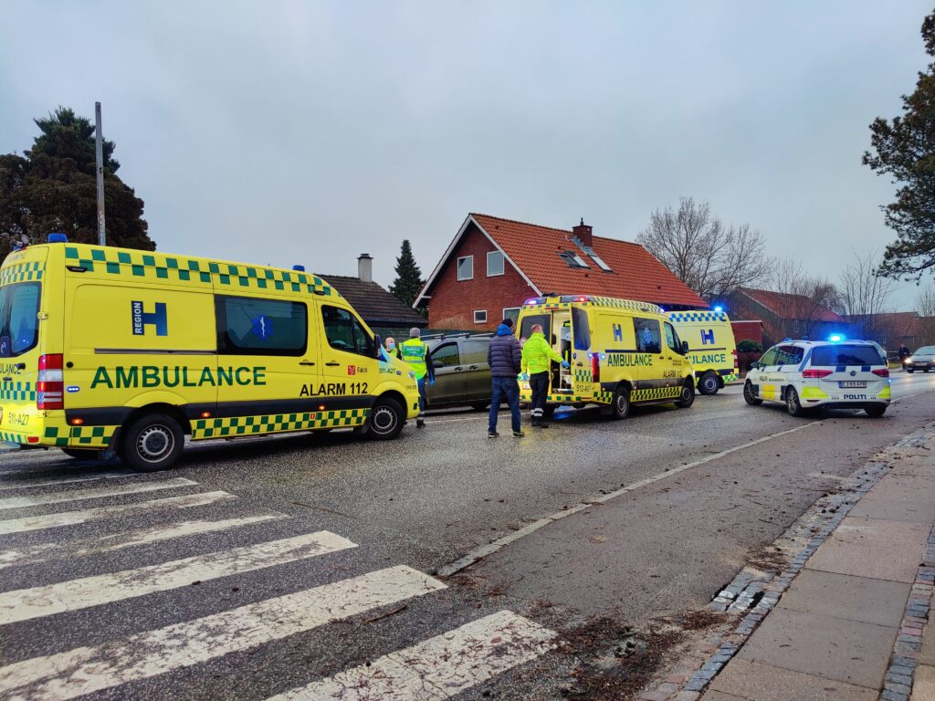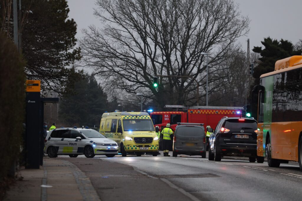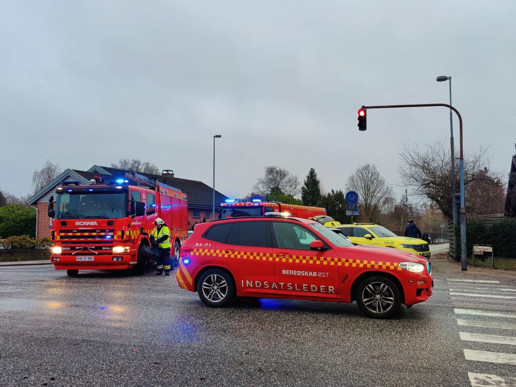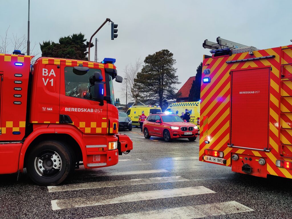 Beredskabet, politi og ambulanceredning er talstærkt til stede ved uheldet, og to personer er kørt til Herlev Sygehus i ambulance.