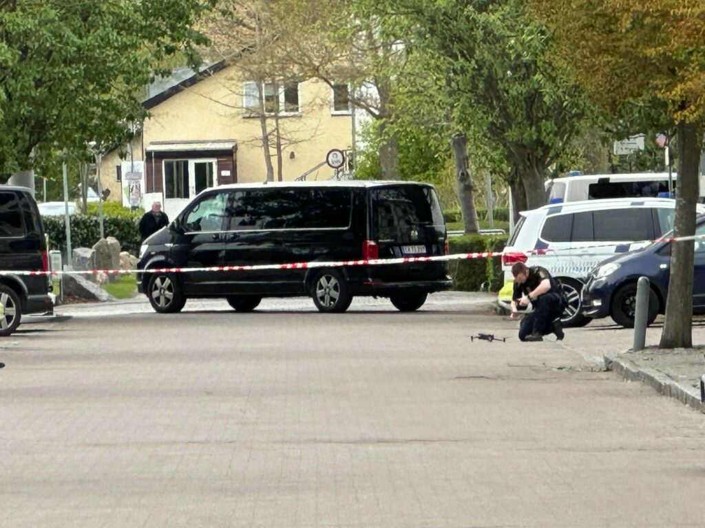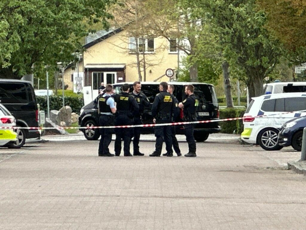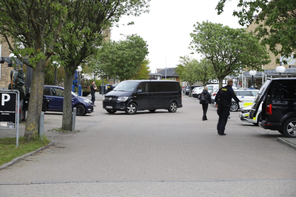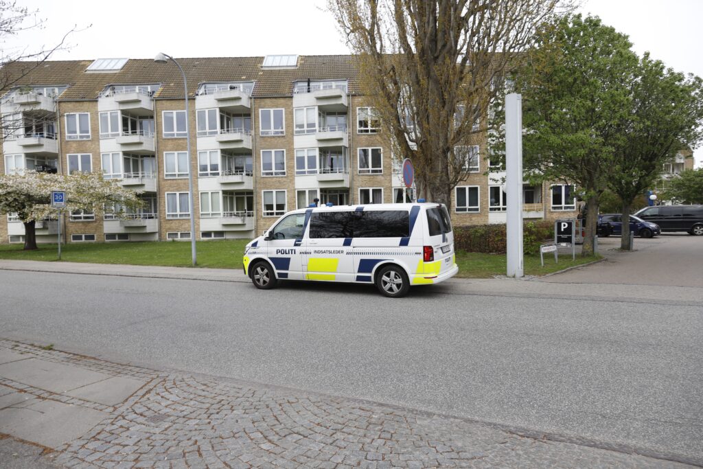 “Da jeg ankommer til stedet, står betjentene med en person, der er anholdt. Han bliver sat ind i en politibil og kørt væk. Jeg kan se, at en aktionsstyrke har været til stede sammen med en indsatsleder og to patruljevogne,” siger Presse-fotos.dks udsendte.