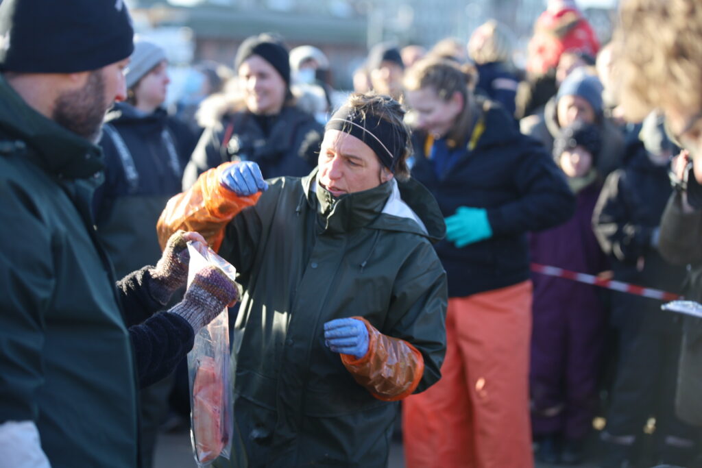 Mange mennesker er mødt op på Kolding Havn fredag.