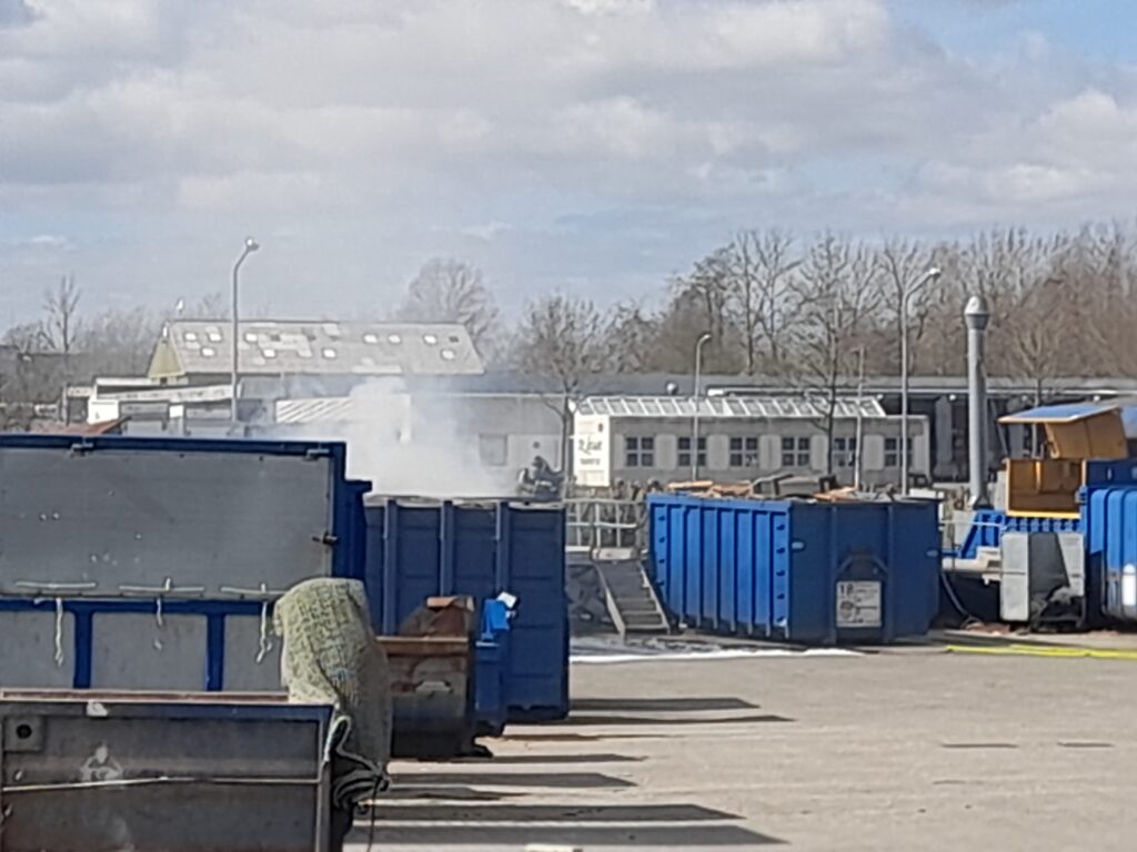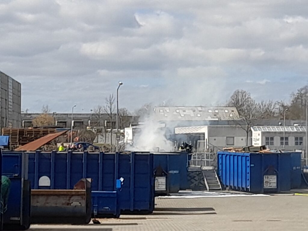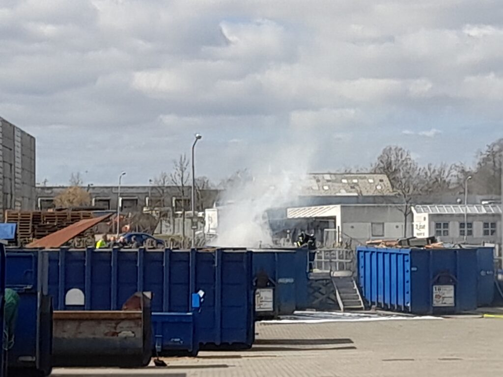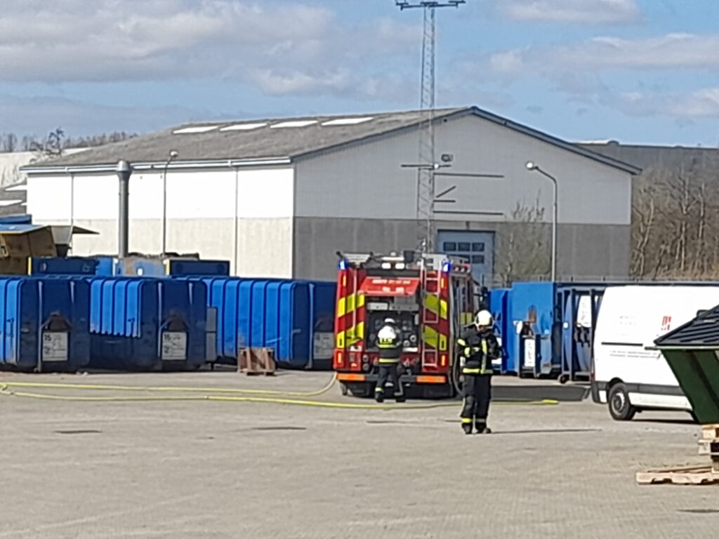 Billeder fra stedet viser, hvordan røg stiger op fra en af containerne.
