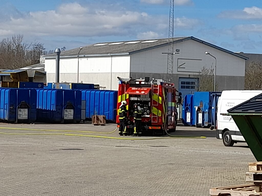 Containeren befinder sig på en genbrugsstation på stedet.