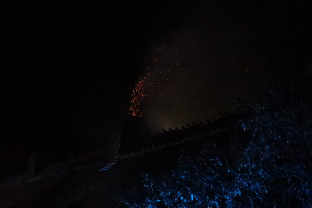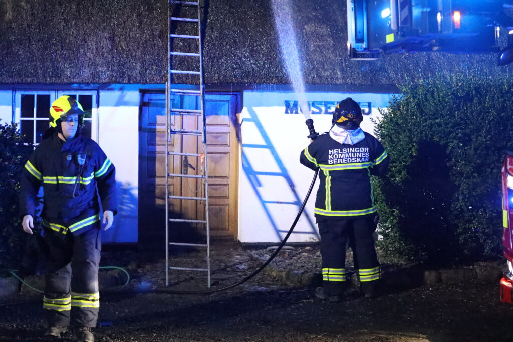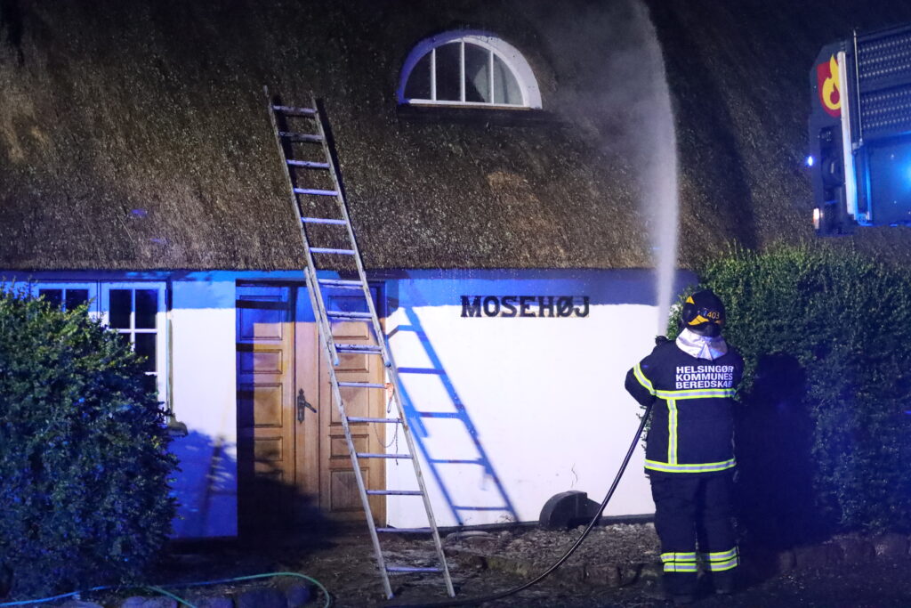 På billeder og video fra stedet, kan man se, at der er tale om en skorstensbrand i et stråtækt hus på stedet.