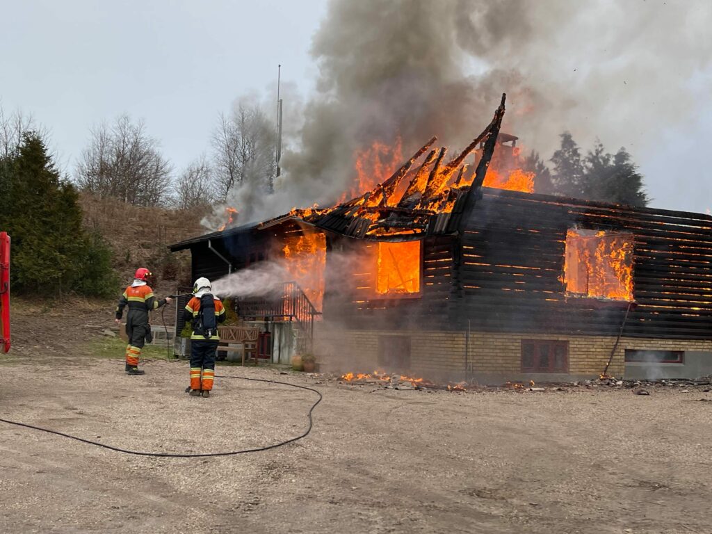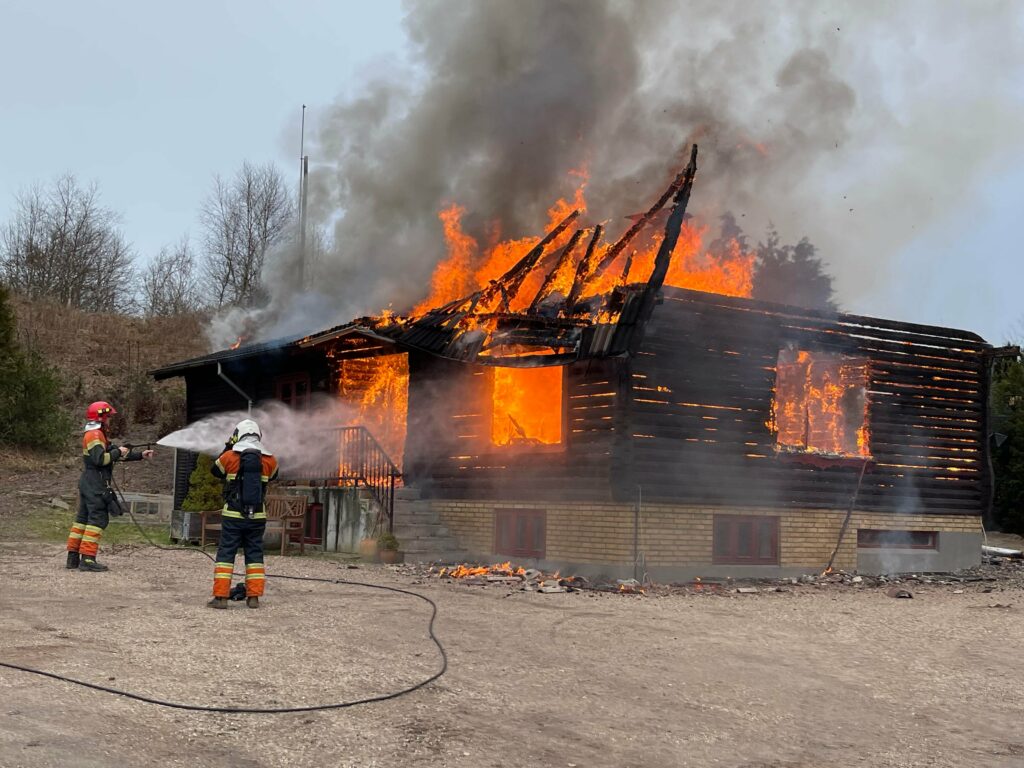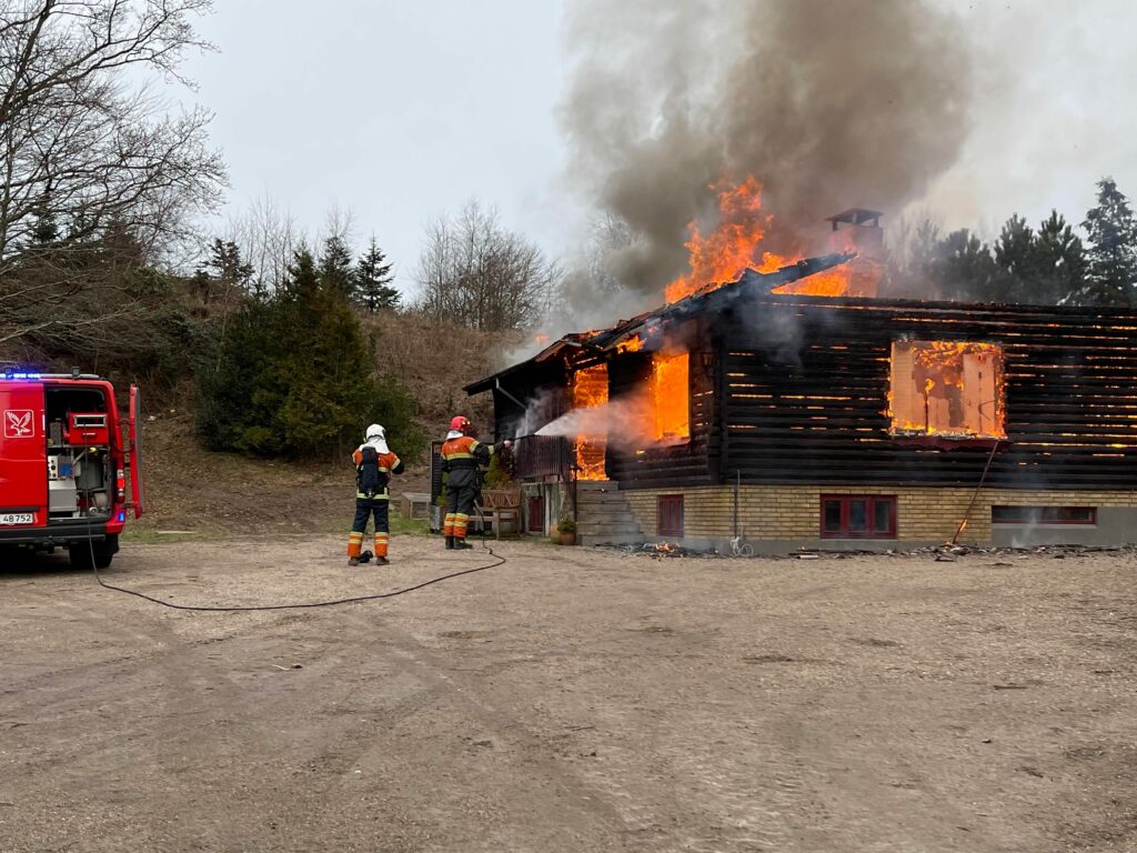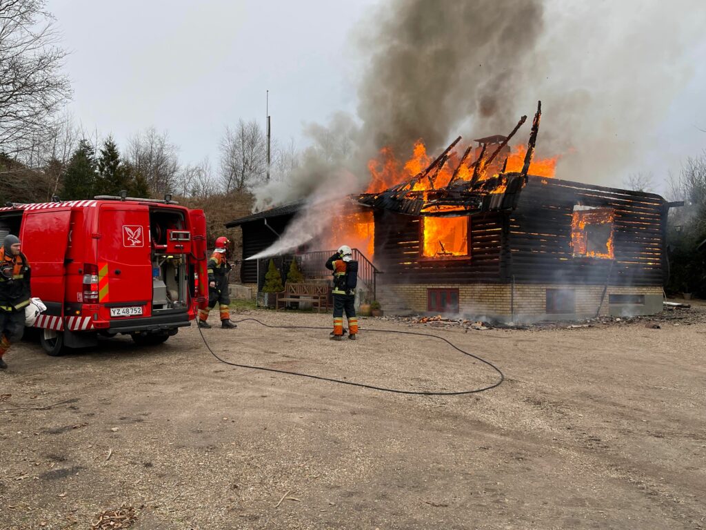 – Vi bliver kaldt ud til en brand i et helårshus, som er lavet af træ. Da vi kommer herud, er huset overtændt. Nu er vi i gang med efterslukningen, siger Bo Isaksen, som er indsatsleder ved Nordjyllands Beredskab.