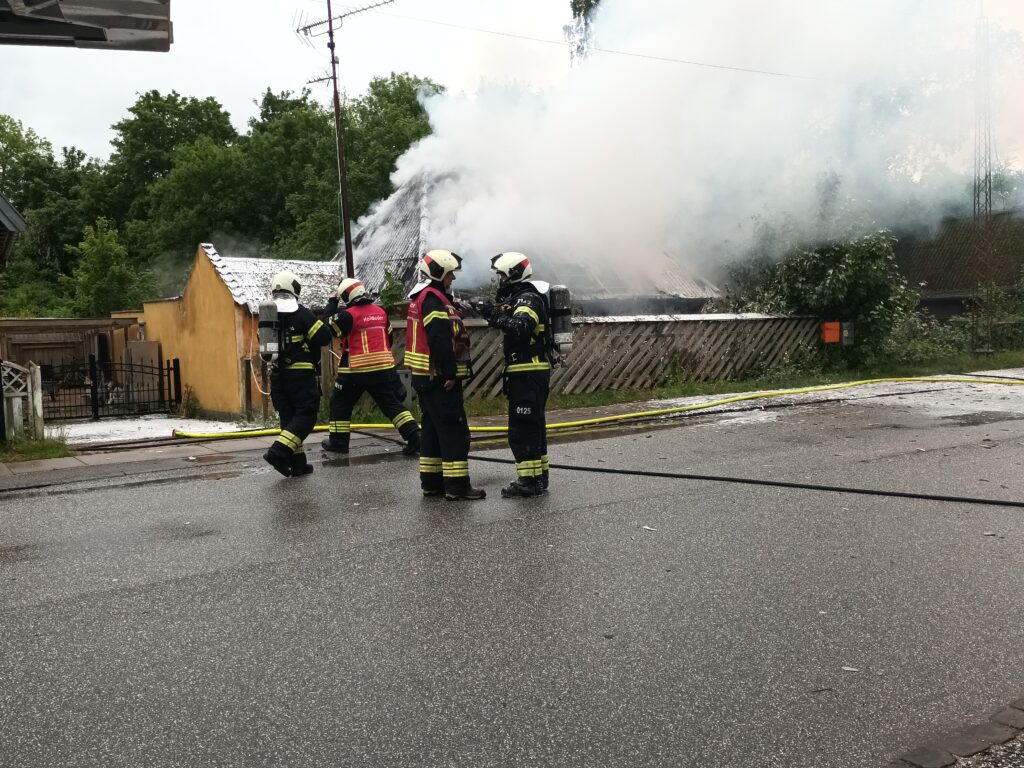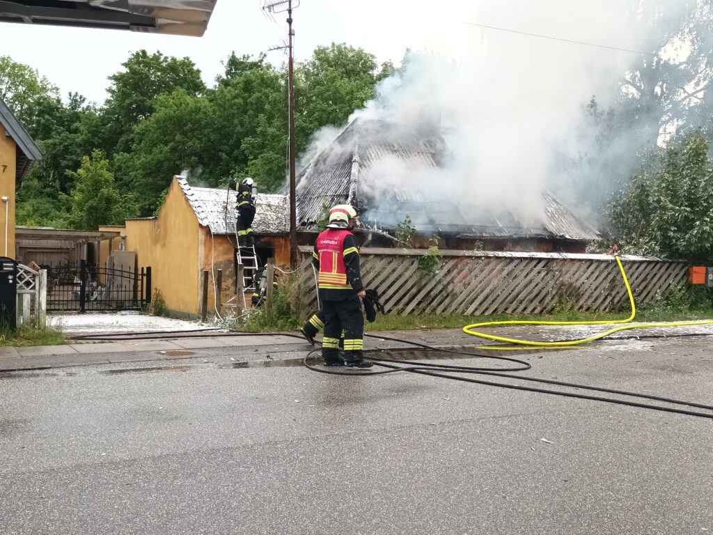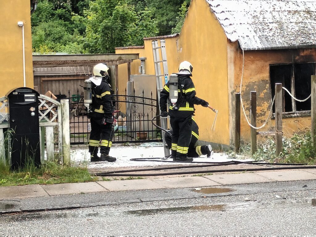 Brandvæsnet kæmper med slukningsarbejdet, men allerede ved brandvæsnets ankomst stod villaen overtændt.