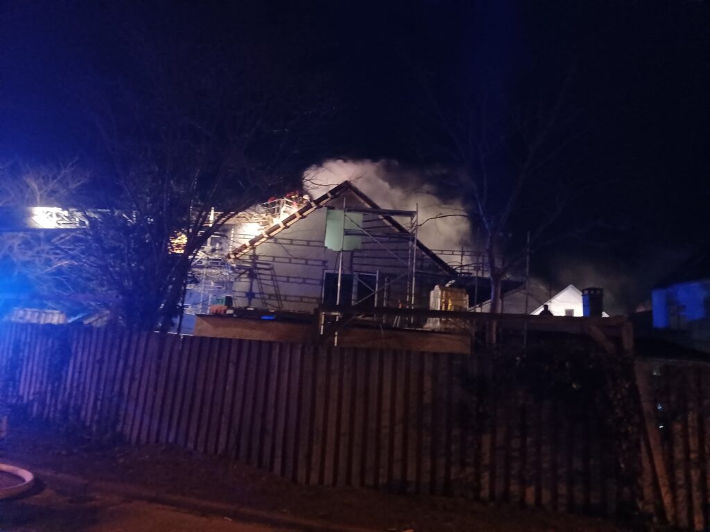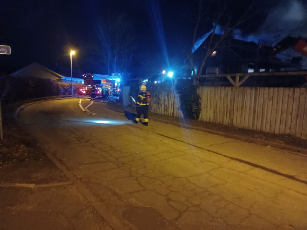 Brandvæsnet er i gang med slukningsarbejdet på stedet.