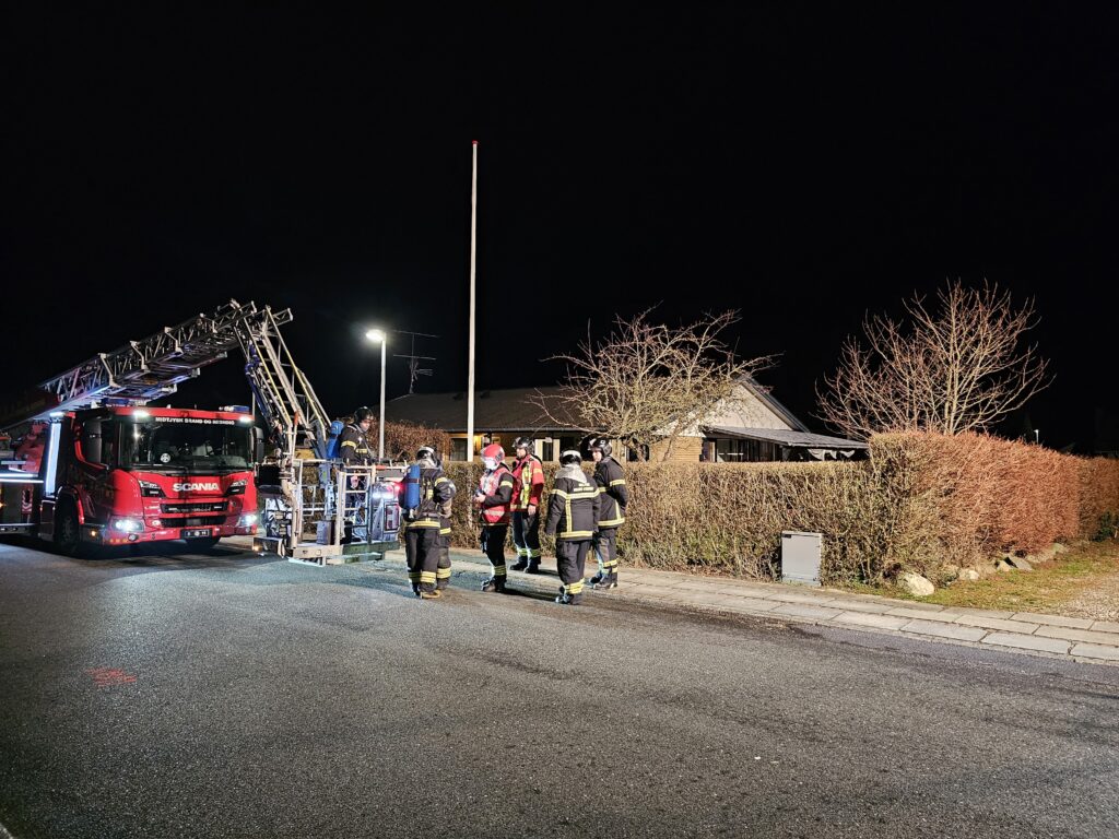 En ellers stille villavej lyses nu op af adskillige udrykningskøretøjer efter en melding om brand på Als.