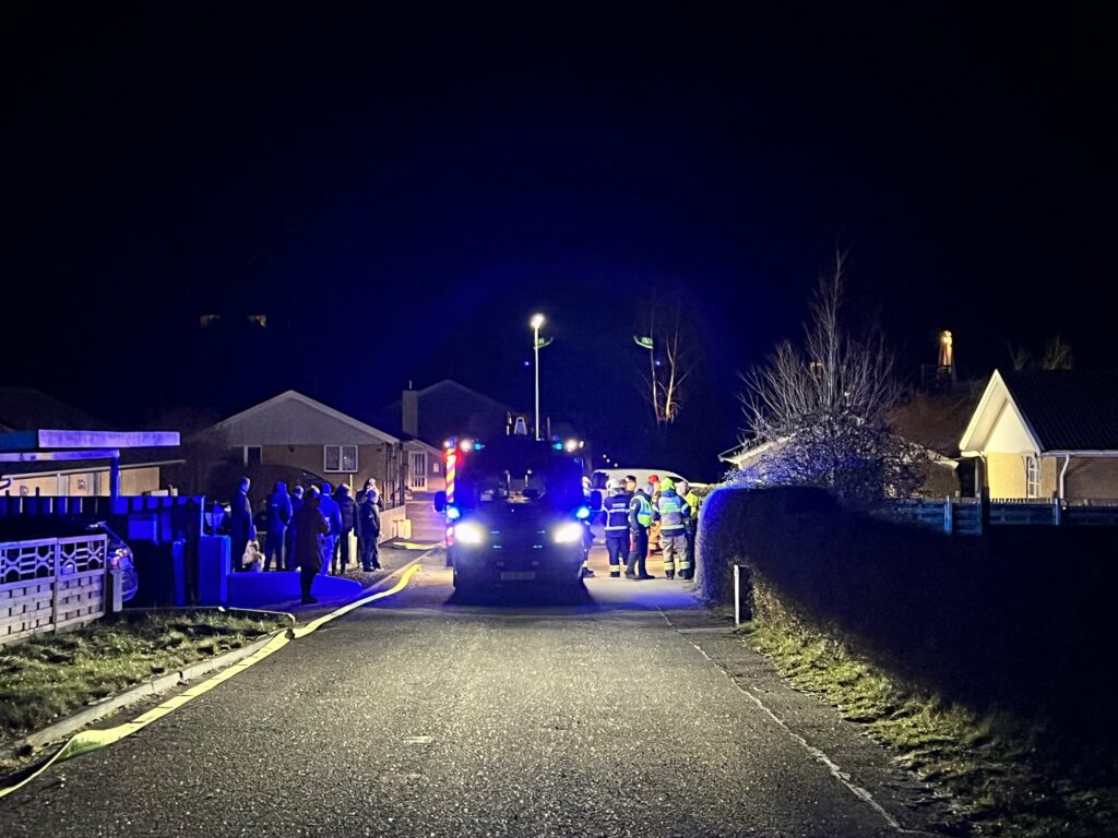 “Vi er på stedet med flere patruljer, men der lader ikke til at være noget politimæssigt i det. Vi har spærret vejen, så der ikke kommer flere folk til, og brandvæsnet kan få lov at til at arbejde”, siger vagtchefen.