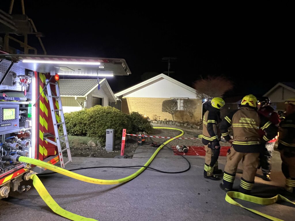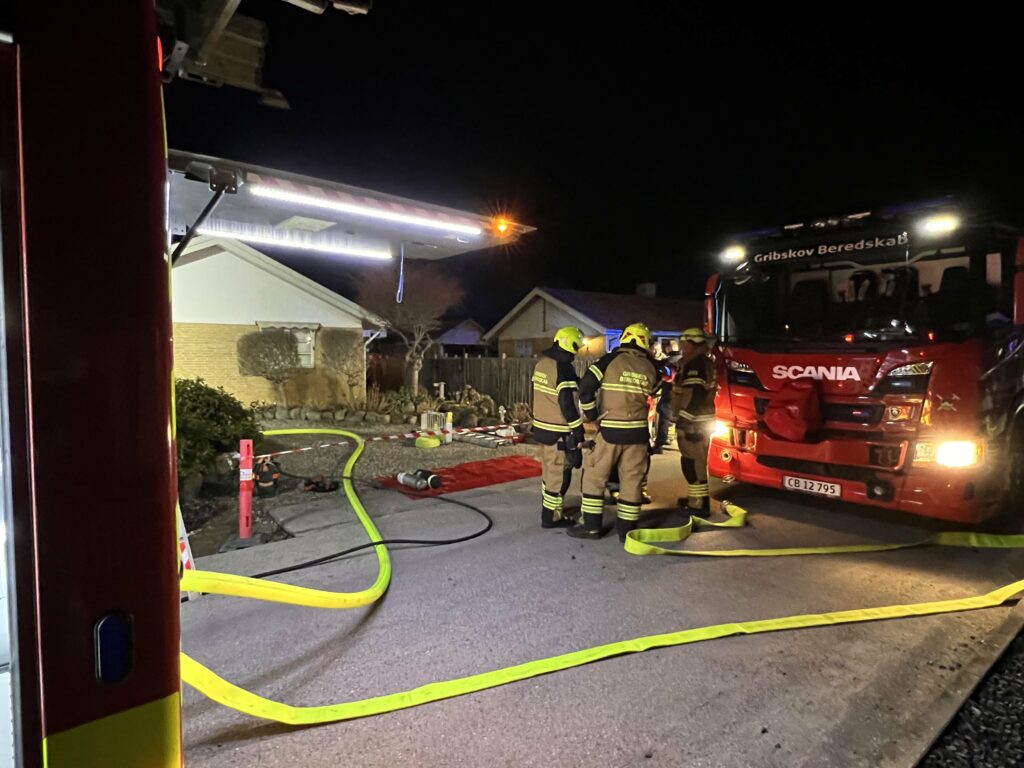 Flere brandbiler og politipatruljer er ankommet stedet, hvor både naboer og beboere allerede stod ude på vejen.