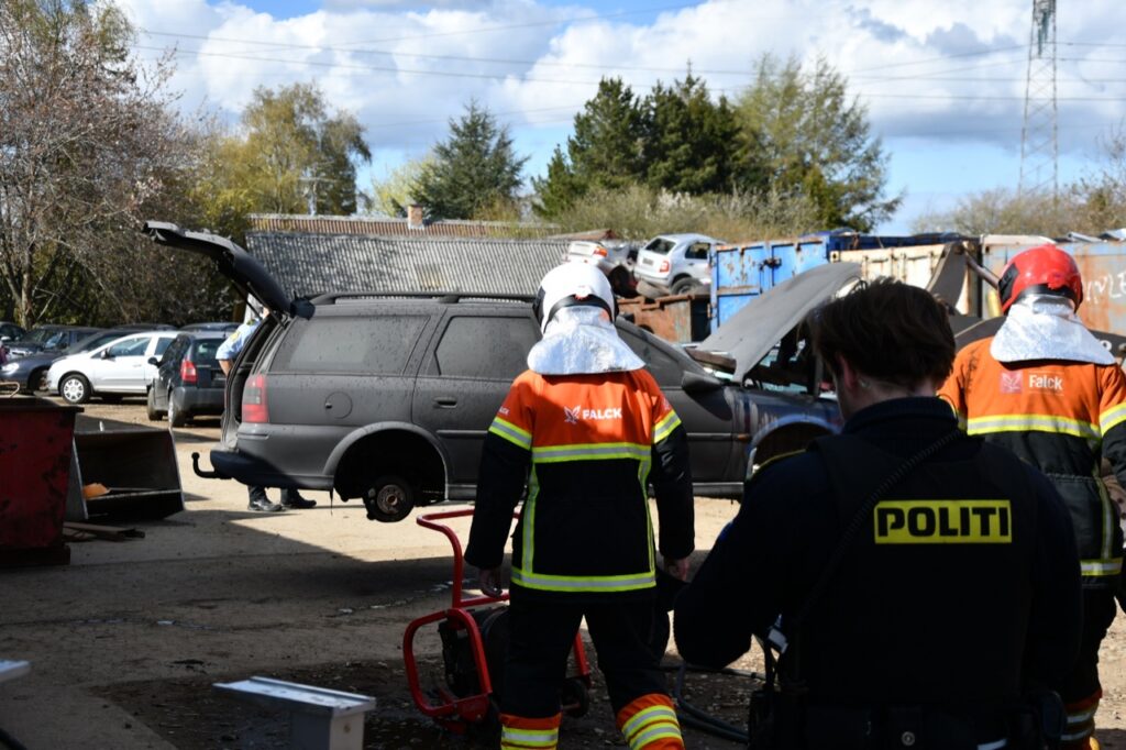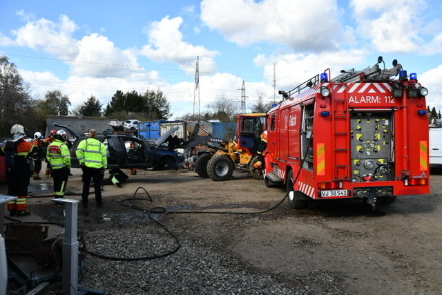 Ved arbejdet gik der ild i bilen, hvorfor brandvæsnet blev tilkaldt.
