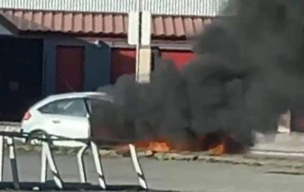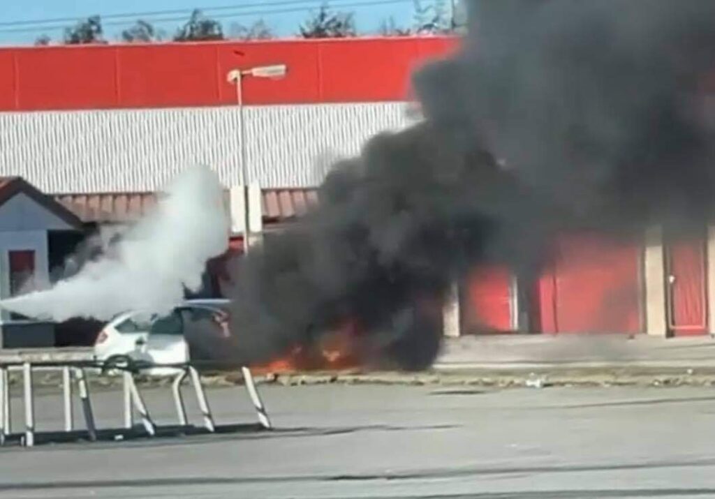 Beredskab 4K er søndag aften kaldt ud til en voldsom bilbrand på Industridalen i Ishøj.