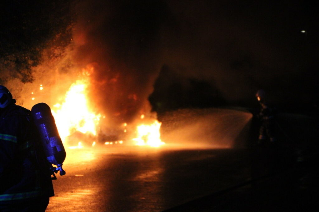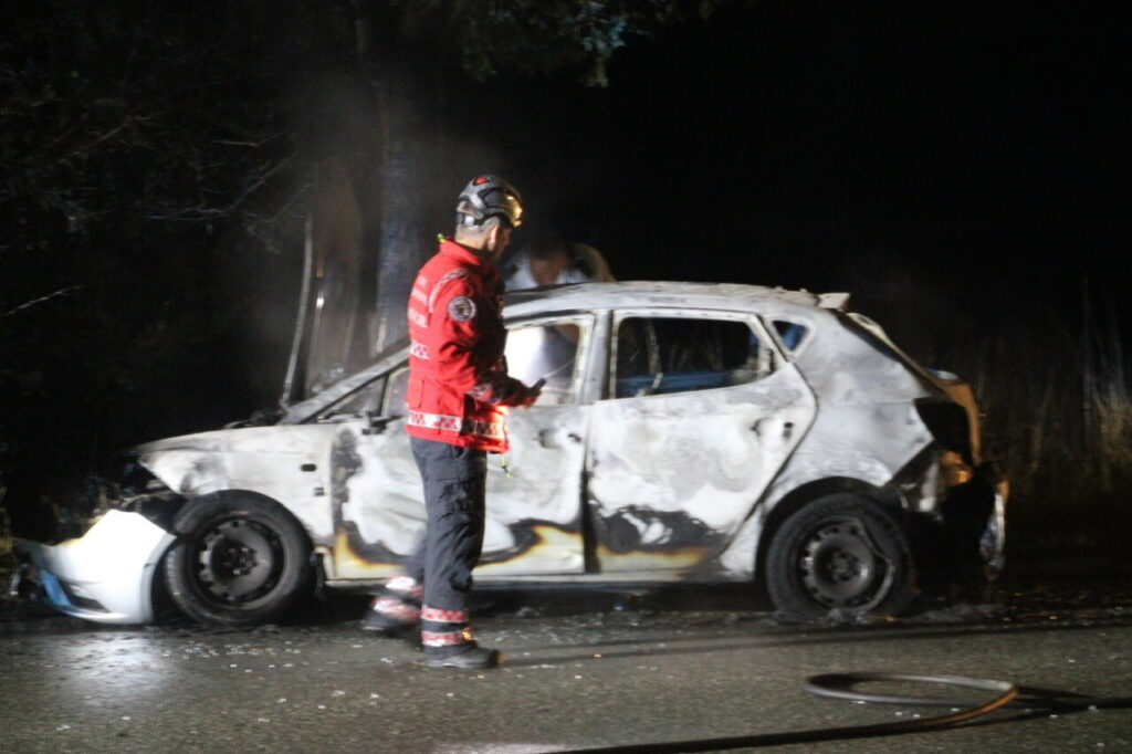 Ved redningsmandskabets ankomst var køretøjet overtændt og stod ikke til at redde. Brandfolkene fik slukket flammerne, men bilen udbrændte helt. Politiet mødte op på stedet sammen med brandvæsenet.