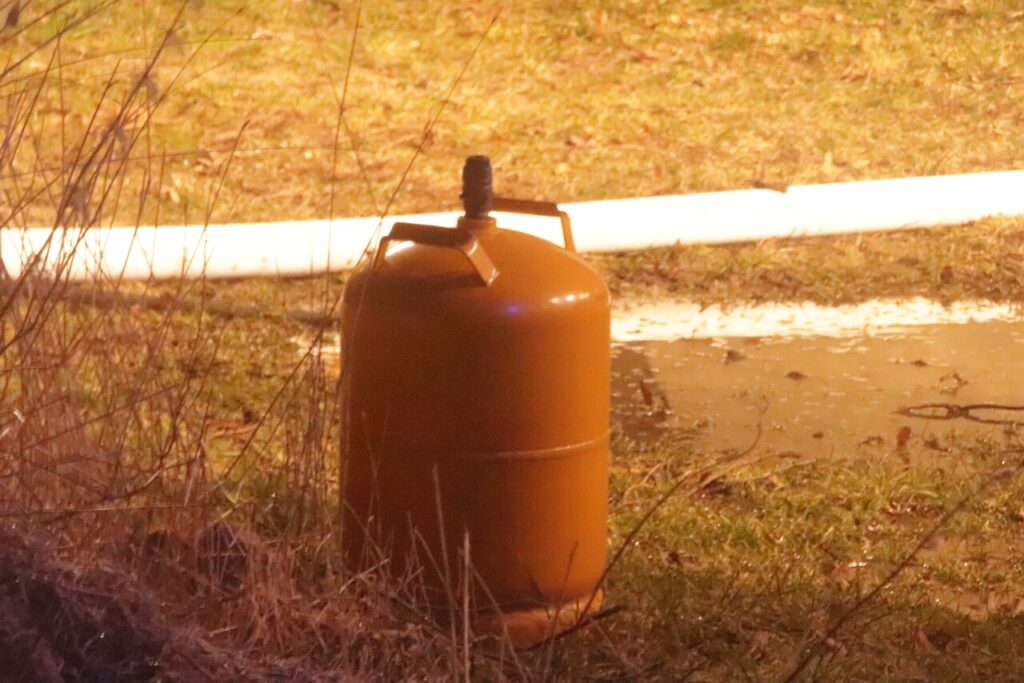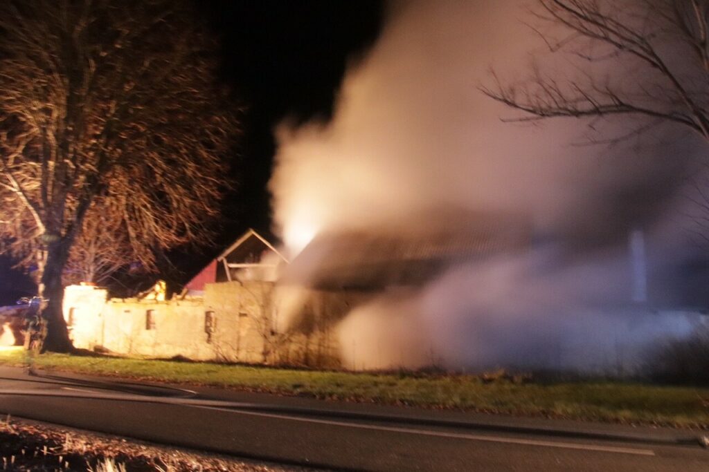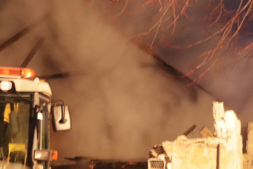 En voldsom gårdbrand er natten til søndag brudt ud på Bakkevej i Vrinners ved Knebel.