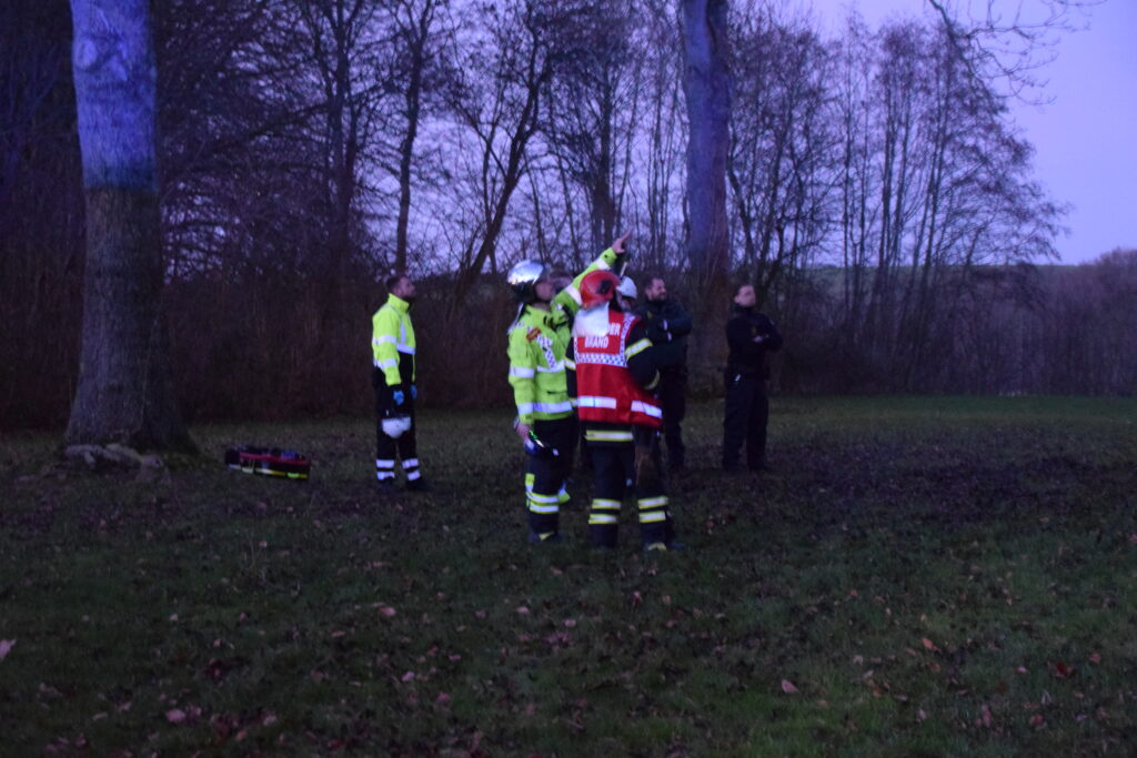 Brandvæsnet, politi og redning er talstærkt fremme på stedet, hvor slukningsarbejdet er i gang.