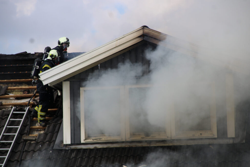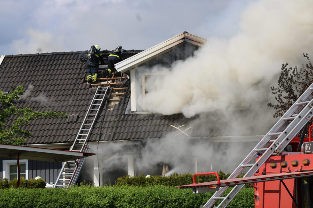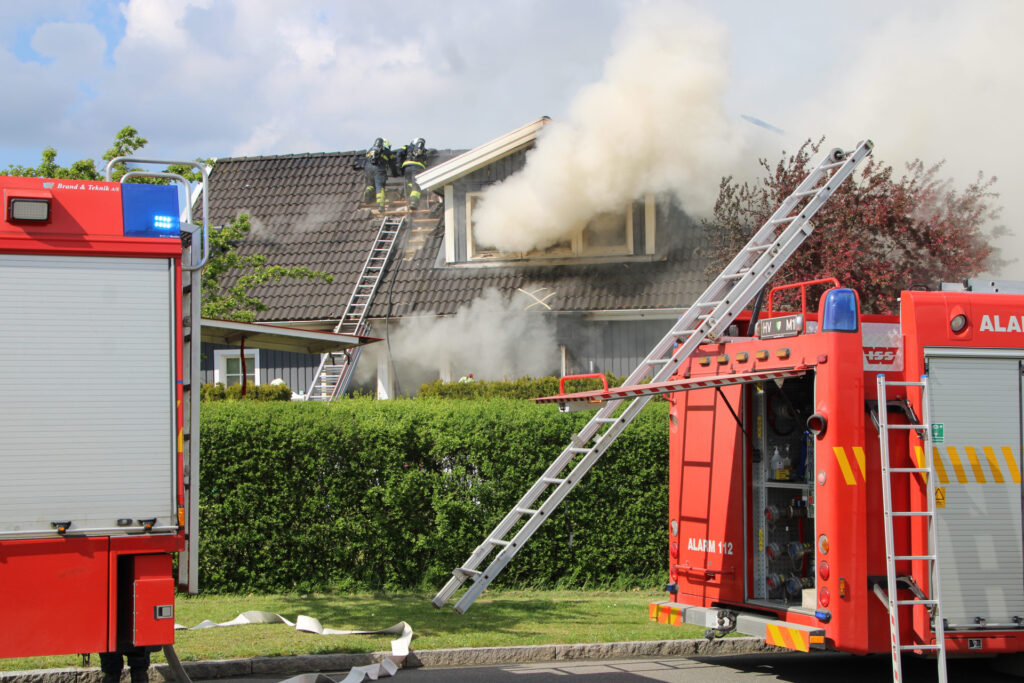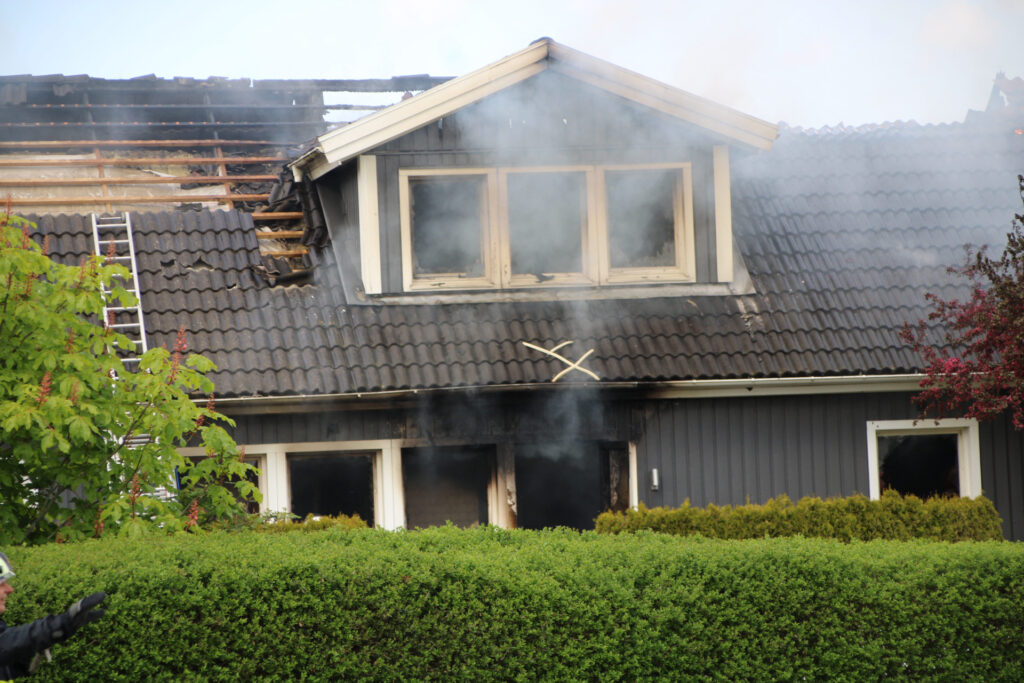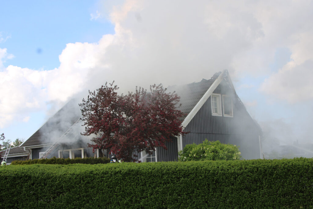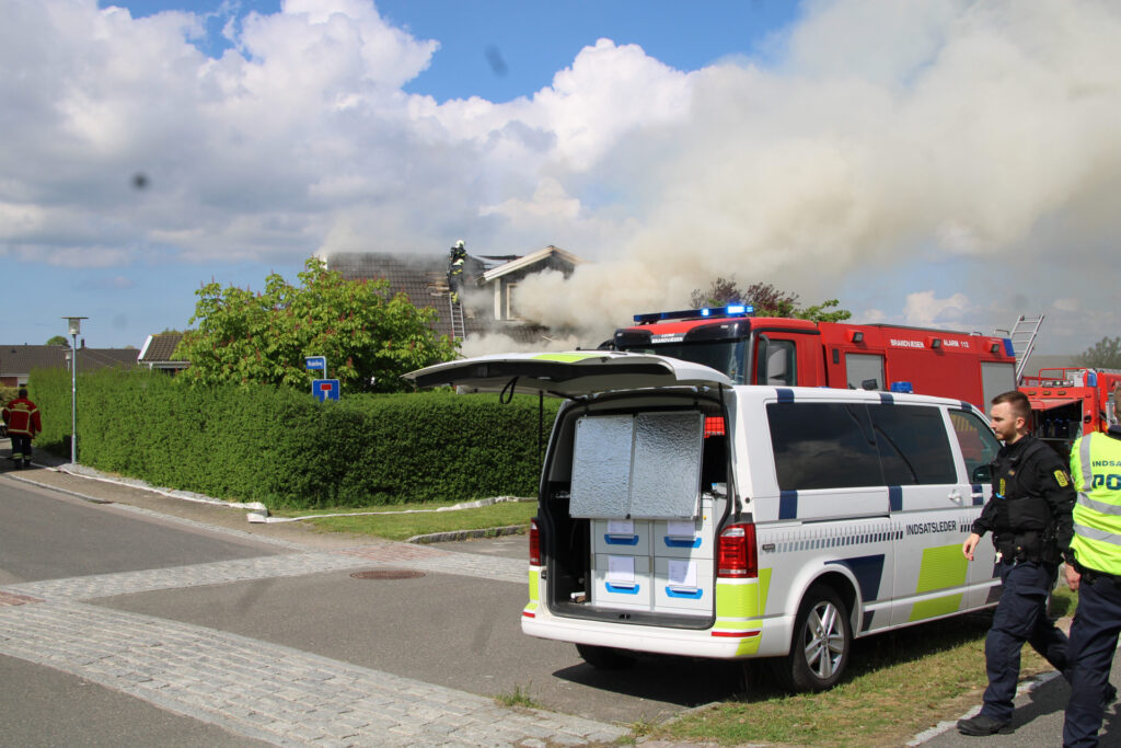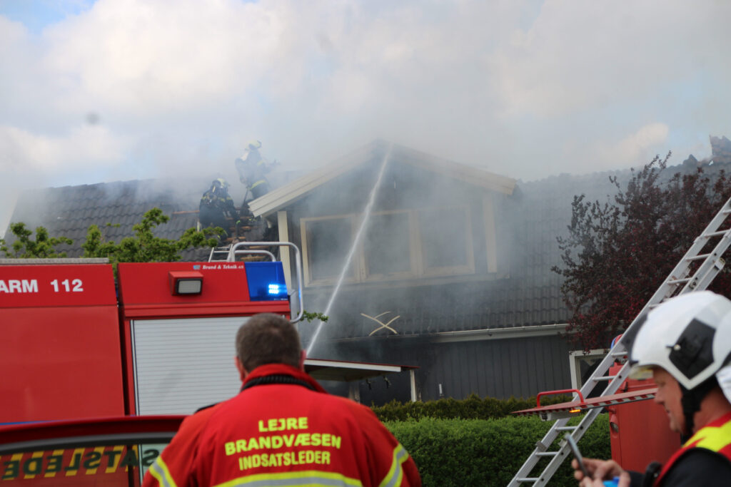 Brandvæsenet arbejder onsdag eftermiddag med at slukke en voldsom brand i en villa på Mirabellevej i Kirke Hyllinge.