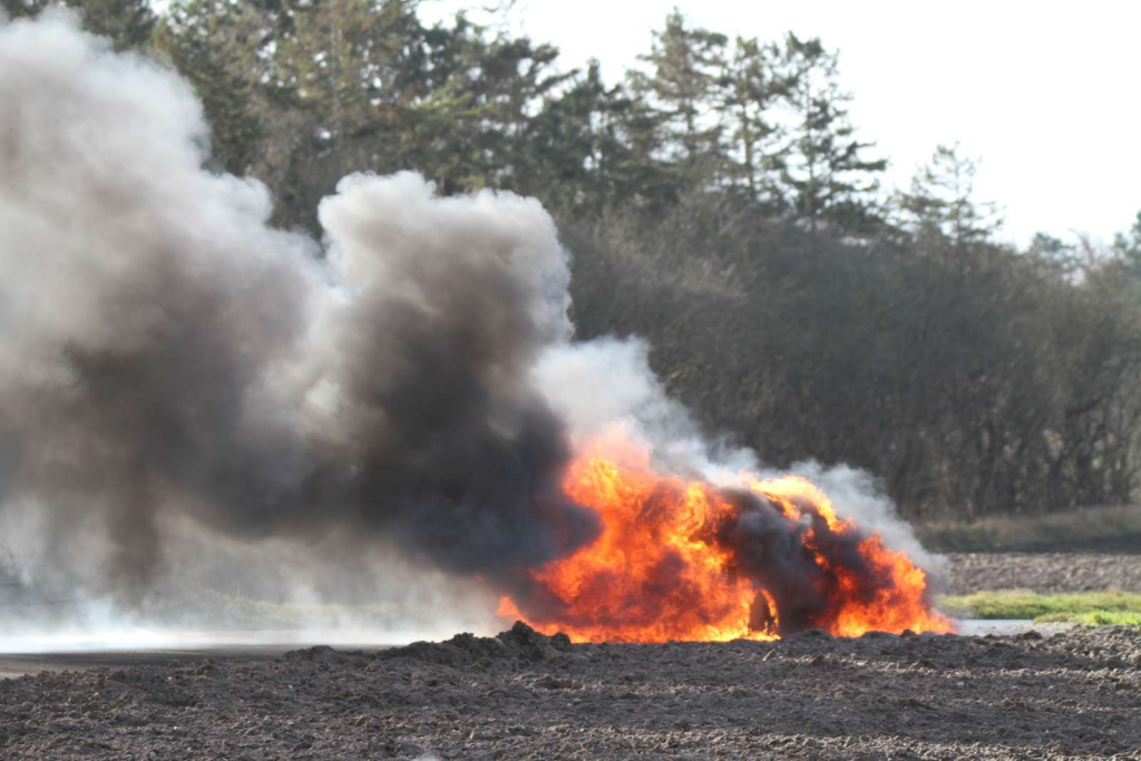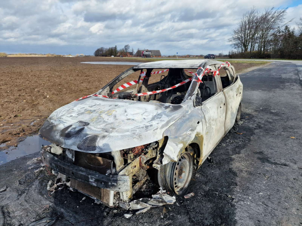 “Da jeg ankom var hele bilen i flammer, og den er kort efter udbrændt,” lyder det fra vores udsendte.