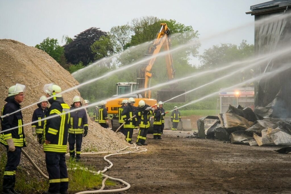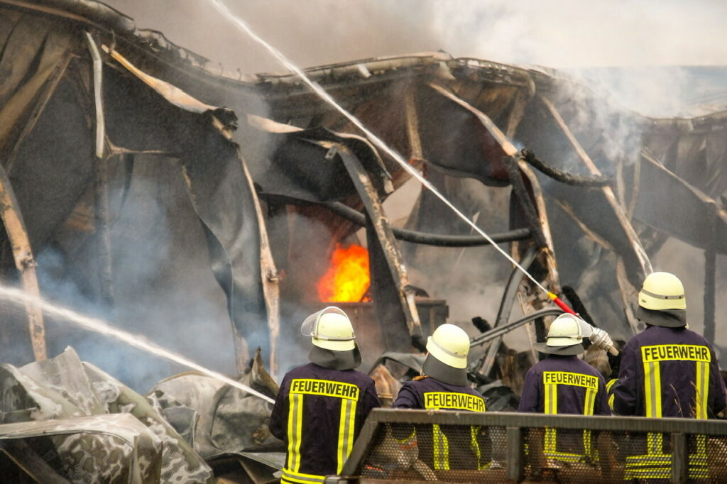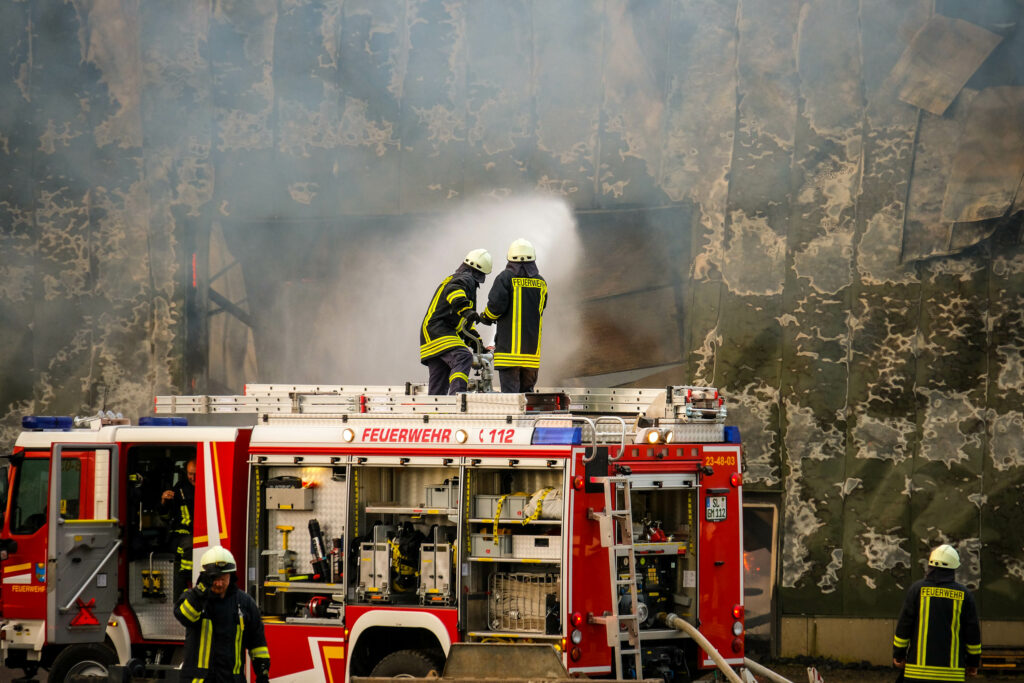 For brandfolkene var det vanskeligt at nå frem til det brændende indhold i den cirka 1500 kvadratmeter store hal, fordi bygningen delvist styrtede sammen under slukningsarbejdet. Derfor blev facadens beklædning fjernet med en gummiged, så personalet fra de syv frivillige brandværn kunne slukke ilden ude fra.