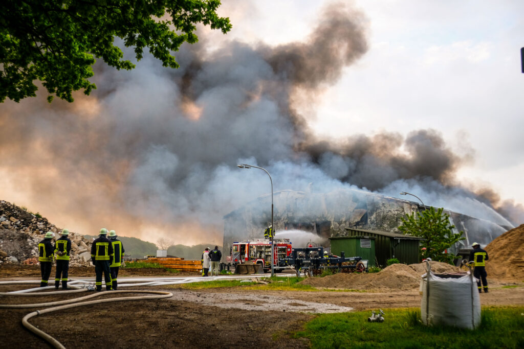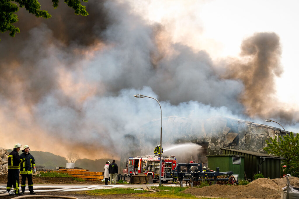 Røgsøjlen kunne ses 15 kilometer væk, da en hal i Stangheck ved Gelting syd for Als lørdag udbrændte totalt.
