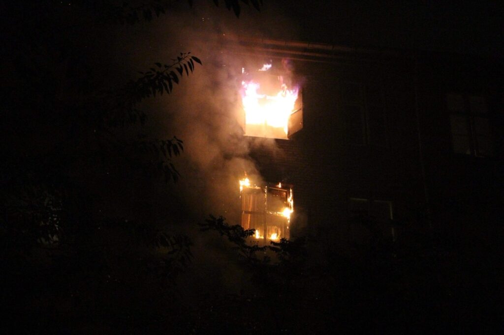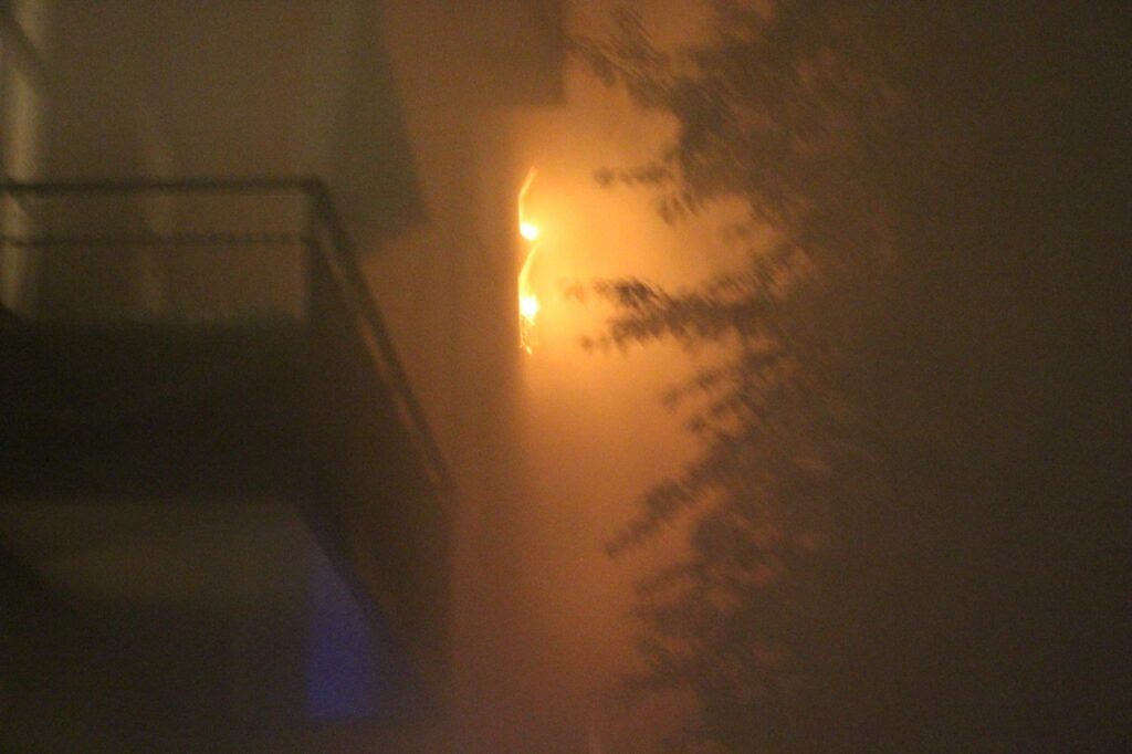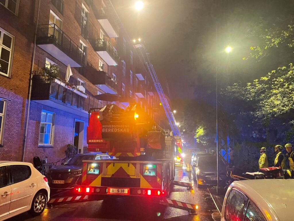Det brænder i en lejlighed og op igennem flere etager. Adskillige brandkøretøjer er på stedet.