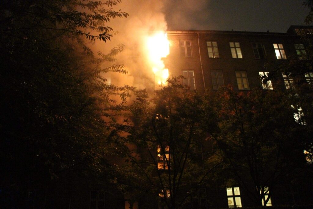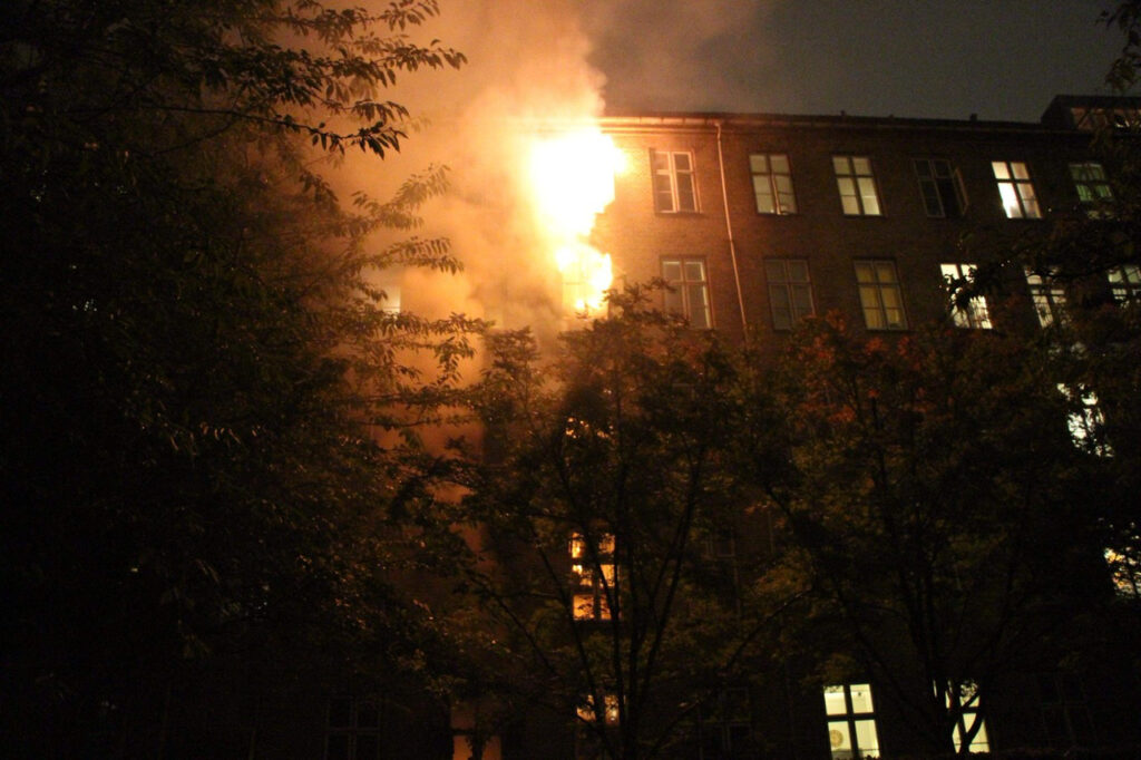 Der er onsdag aften udbrudt en voldsom brand i en opgang på Ejderstedsgade i København.