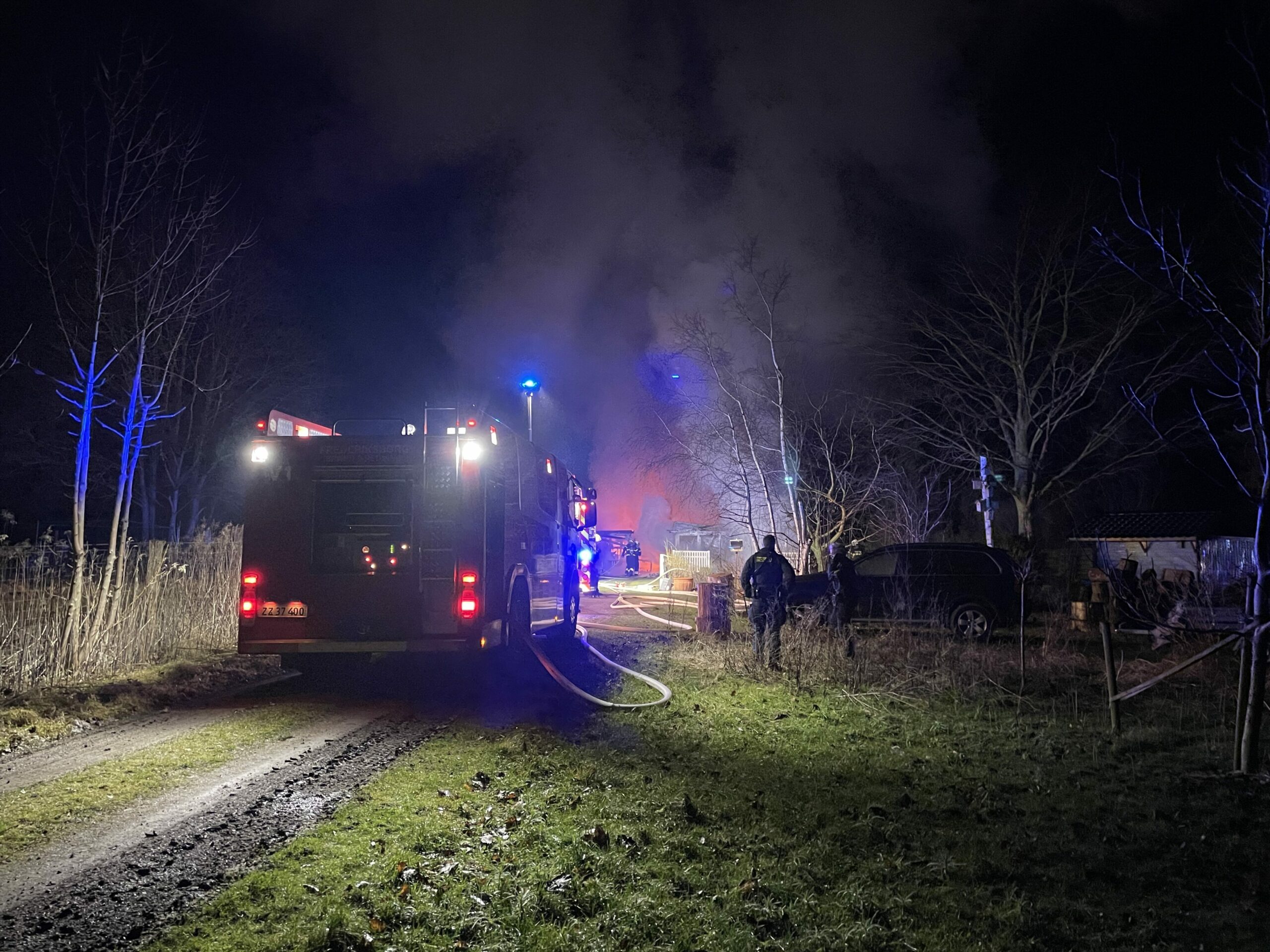 Fremme på stedet kunne beredskabet konstatere voldsom brand i sommerhuset med flere meter høje flammer.