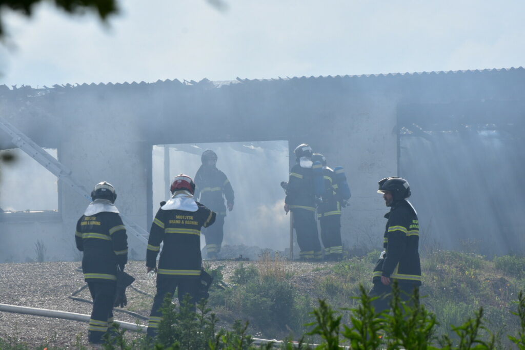 Brandvæsnet kæmper med slukningsarbejdet på stedet.