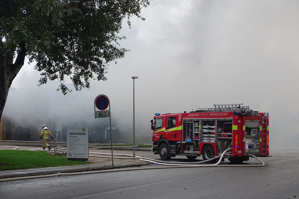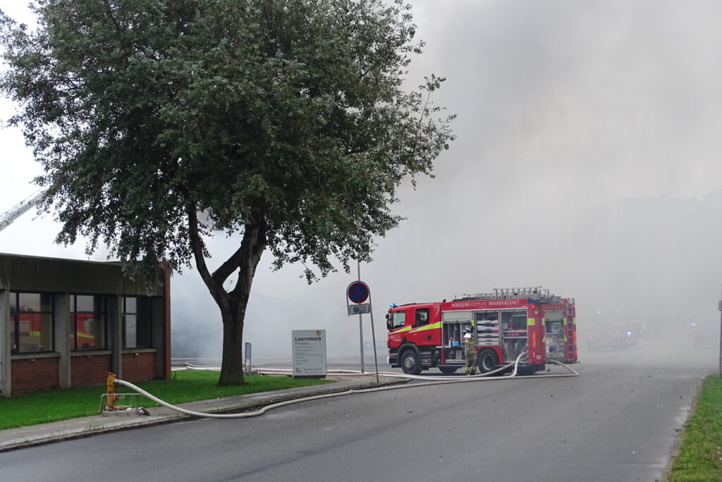 Mandag eftermiddag er der udbrudt brand i en industribygning omkring Learnmark i Horsens.