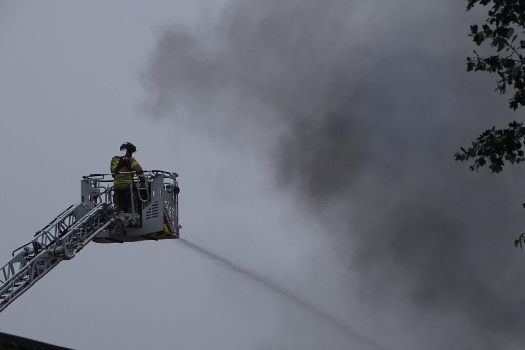 Brandvæsenet arbejder mandag eftermiddag på stedet.