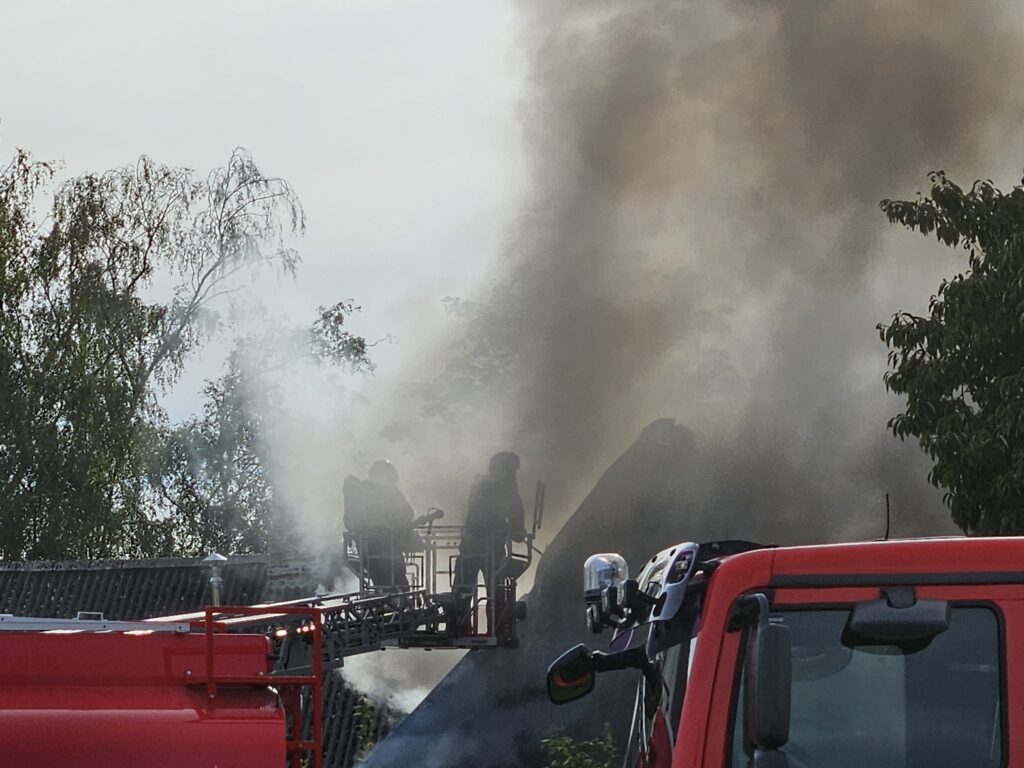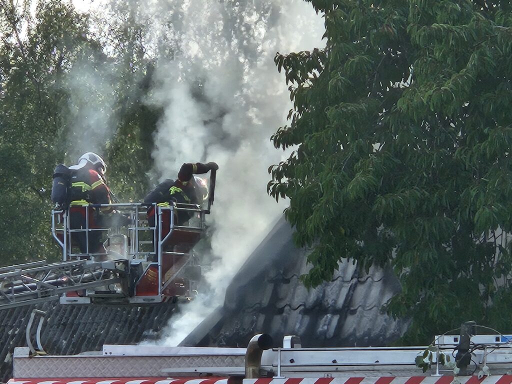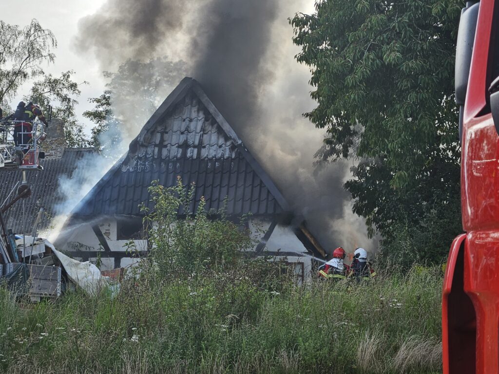 Brandvæsenet er i gang med slukningsarbejdet på stedet.